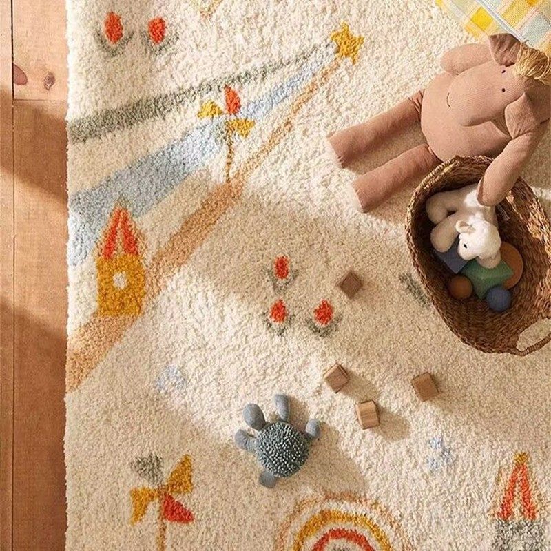 加厚仿羊绒儿童房加厚地毯防摔游戏爬行垫床边毯卧室地毯水洗定制