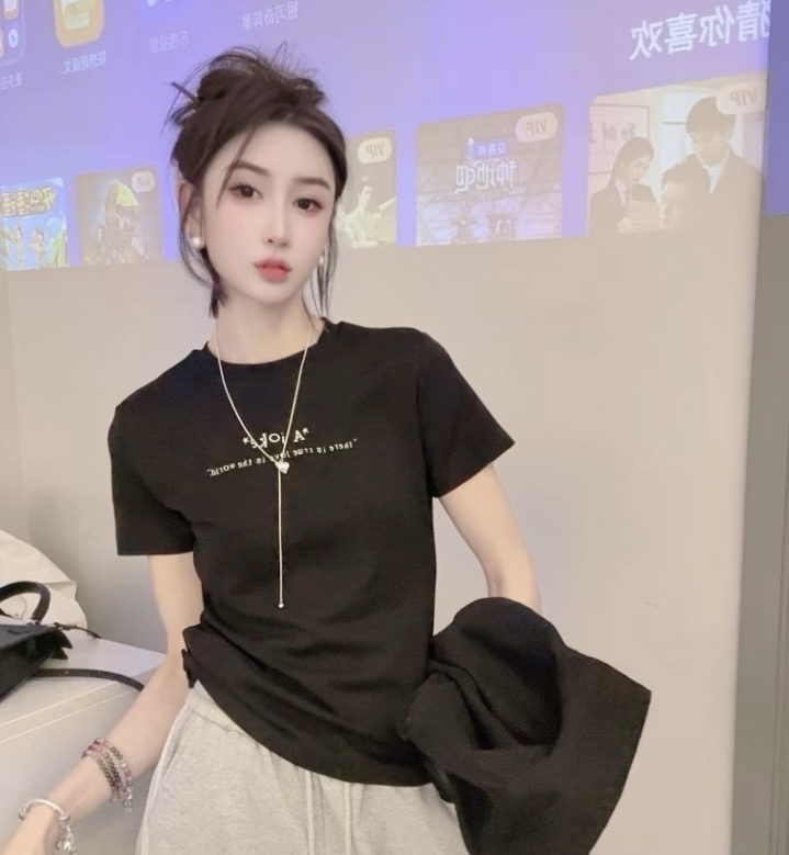 欧洲站2025春季新款前后字母图案印花短袖t恤女时尚洋气百搭上衣