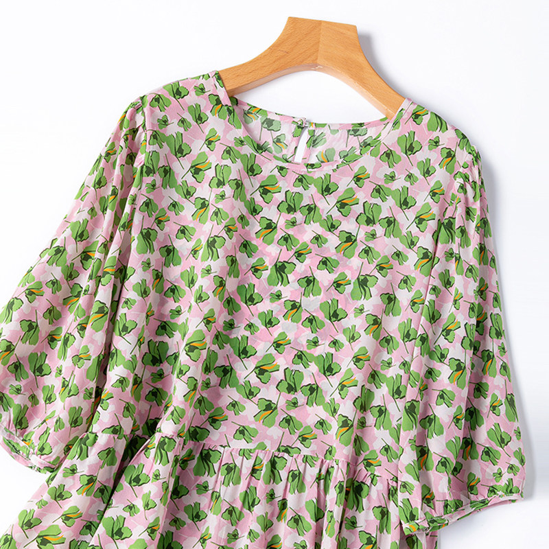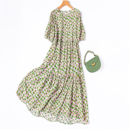 2.7米大摆!文艺!满身碎花!真丝度假风泡泡袖加长蛋糕裙连衣裙