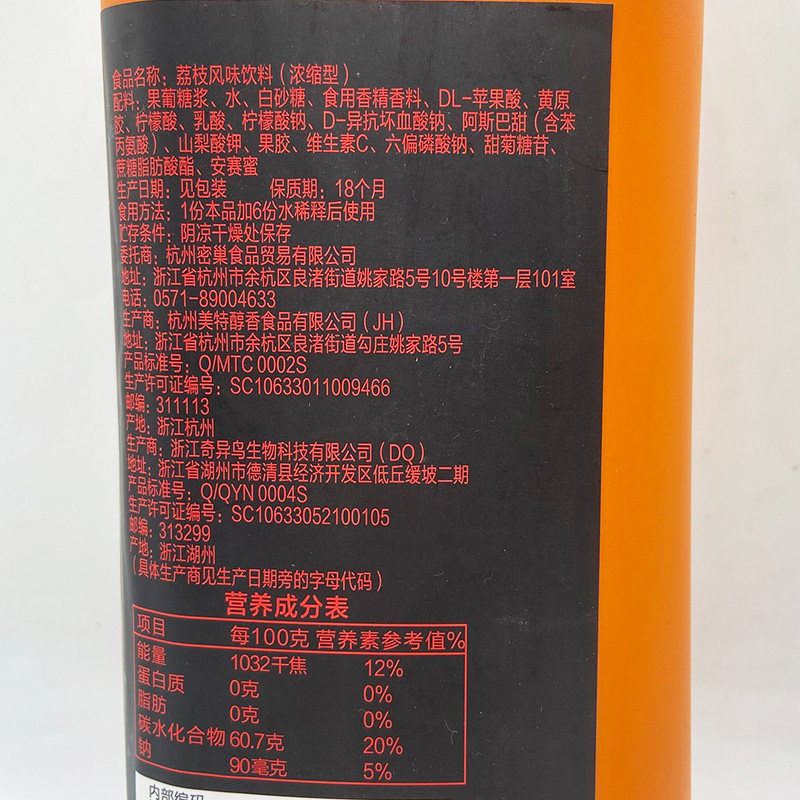 博多浓缩荔枝果汁饮料糖浆2L 餐饮奶茶原料奇异鸟蜜果正品保证