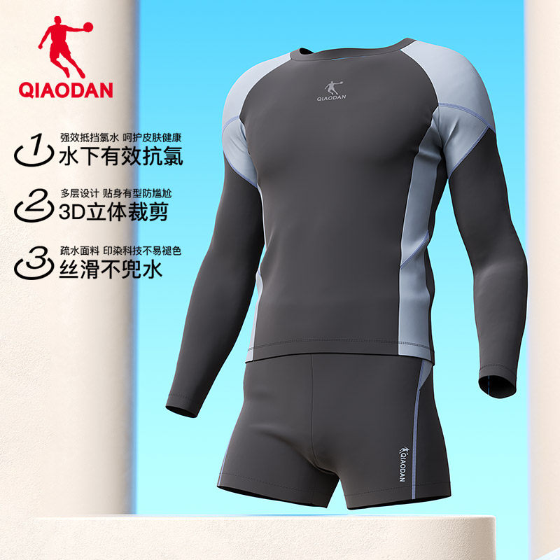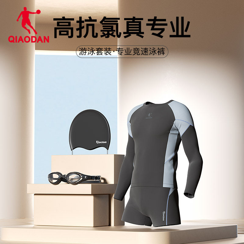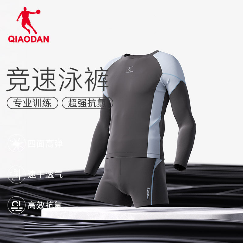 乔丹泳衣男士2025新款长袖短裤专业防晒速干保守遮肚显瘦泳装男款