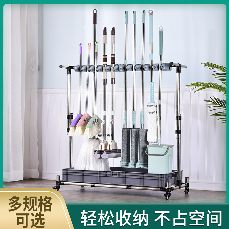 不锈钢可移动e拖把挂架挂钩落地式放扫把墩布置物架子收纳清洁工
