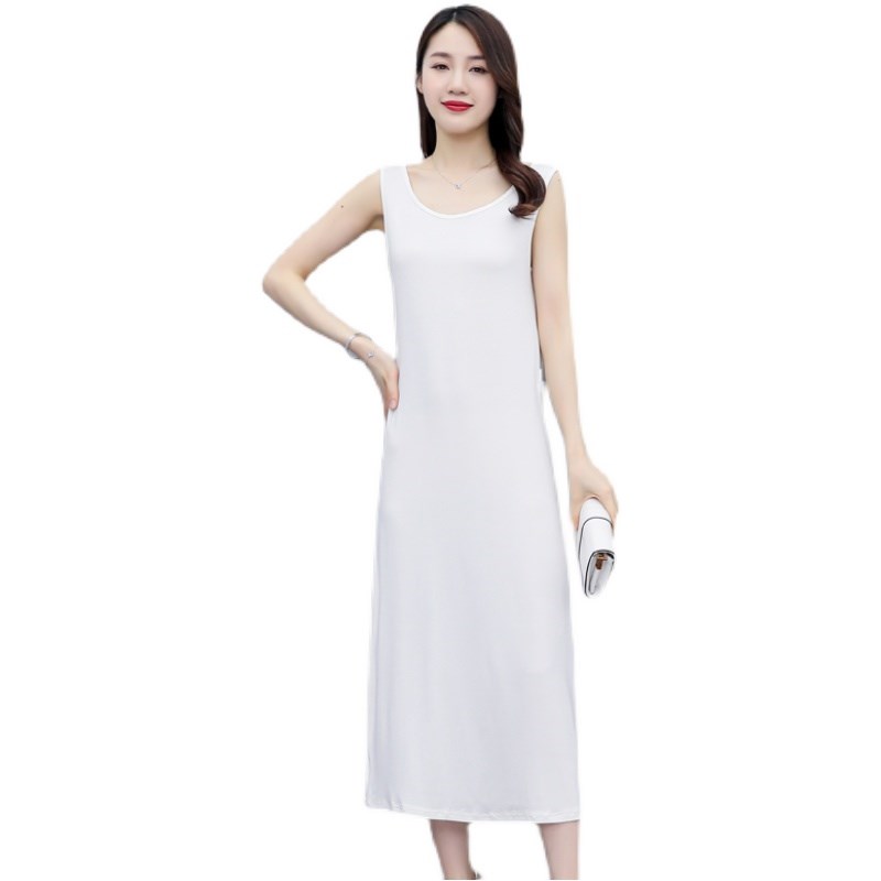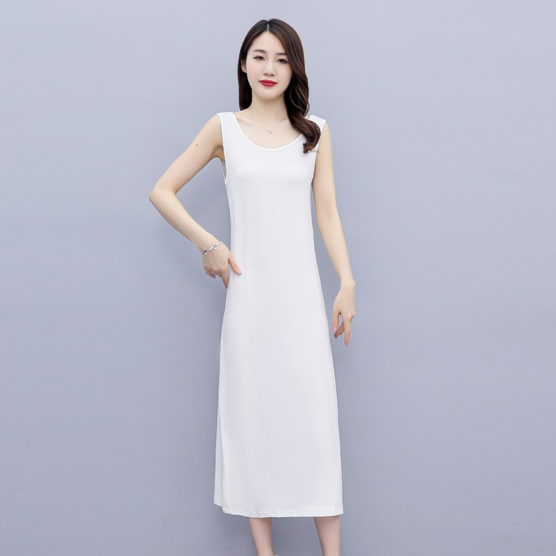 吊带背心裙夏长款女大码无袖打底过膝直筒宽松白色背心长款连衣裙