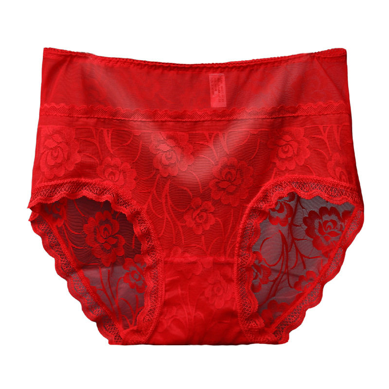 透明胖MM性感蕾丝无痕女士内裤提臀高腰纯棉底裆裆大码三角内裤薄