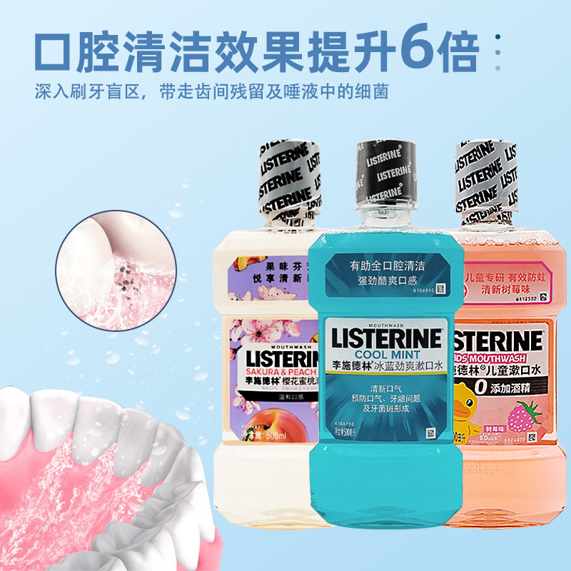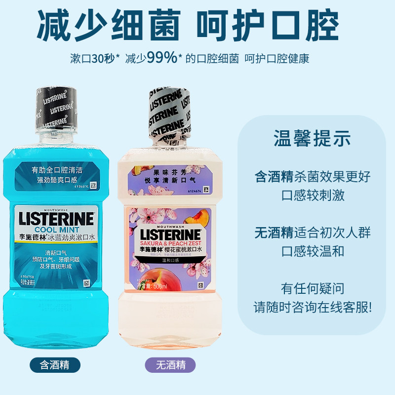 listerine李施德林漱口水杀菌除口臭男生防蛀牙清新口气500ml套装