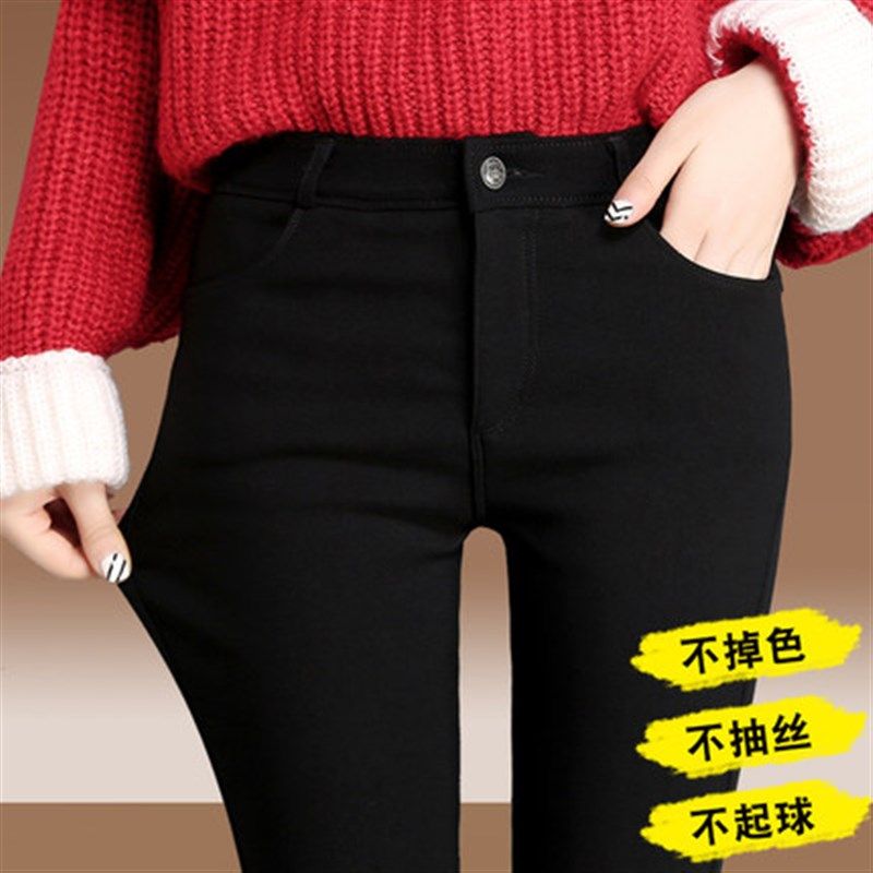 黑色弹力打底裤女外穿春秋薄款高腰显瘦小脚铅笔紧身加绒加厚裤子
