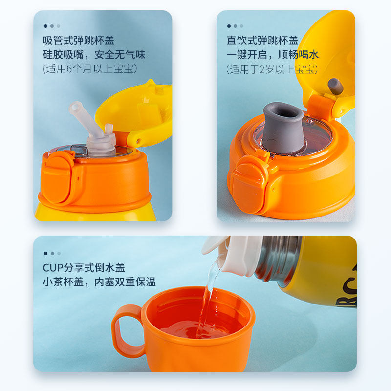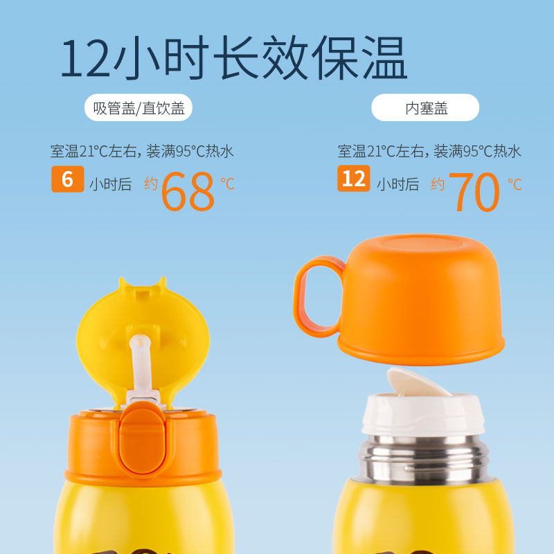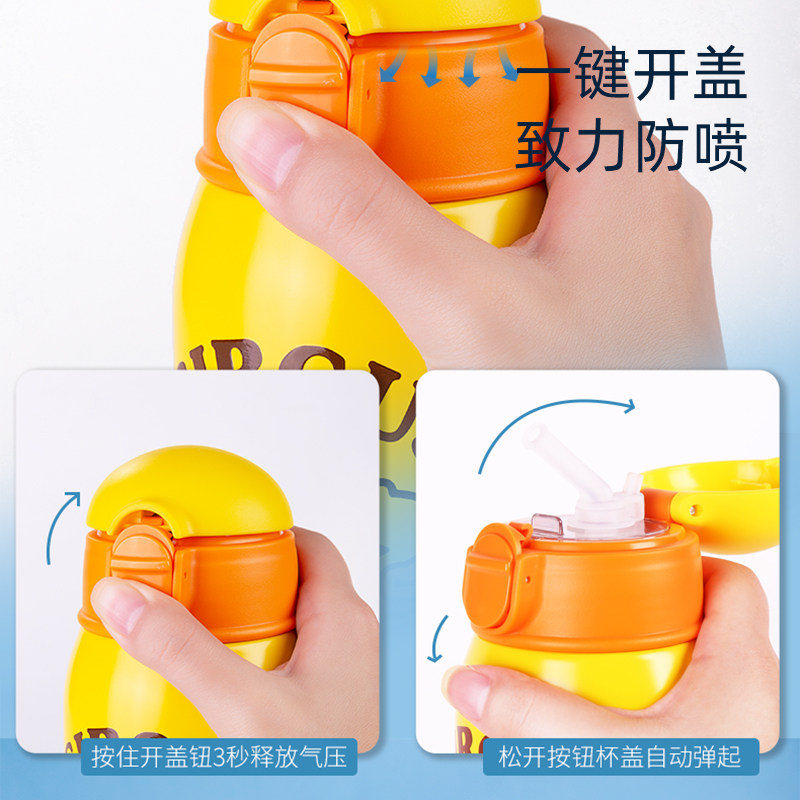 B.Duck儿童保温杯带吸管水杯子316不锈钢幼儿学生大容量550ml水壶