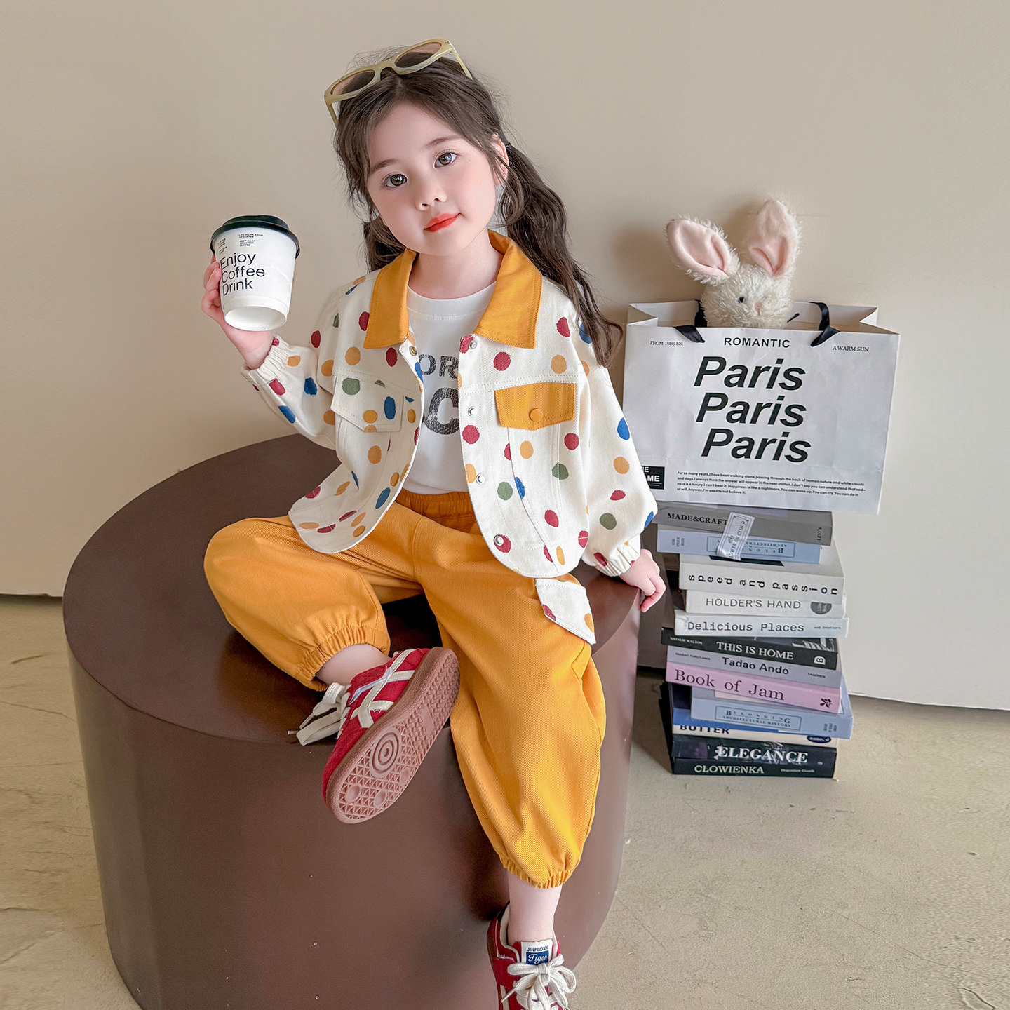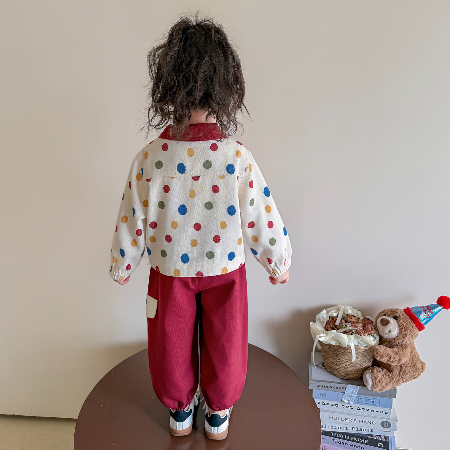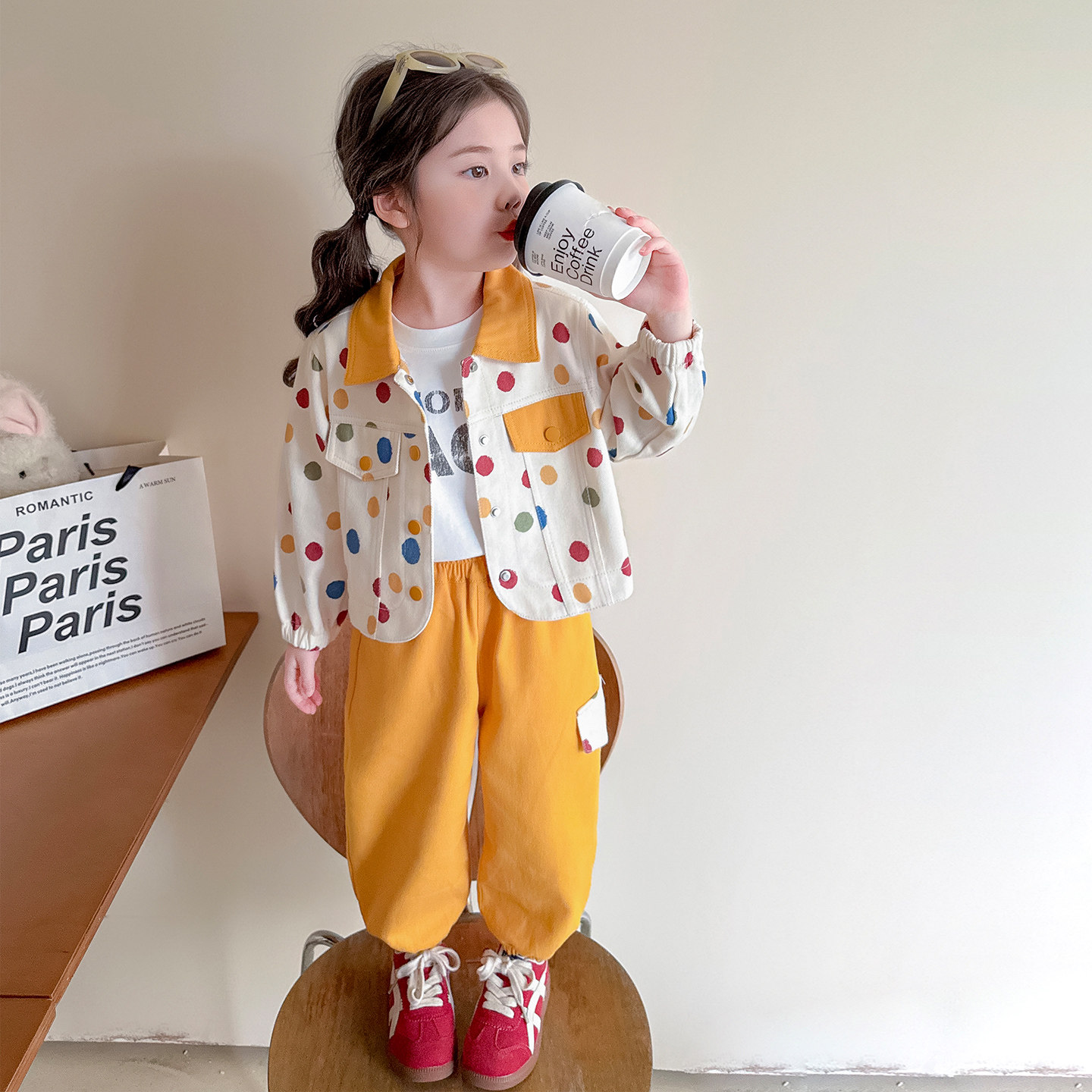 女童波点翻领外套工装裤两件套儿童春季2026新款宝宝洋气时髦套装