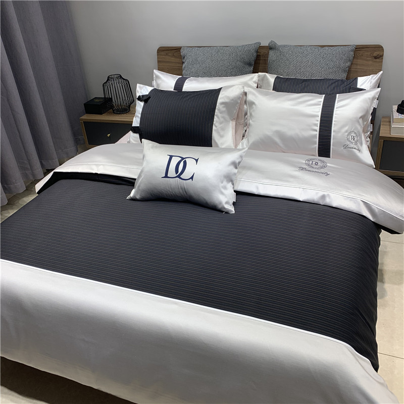 全棉四件套欧式简约商务六件套纯棉床单床笠刺绣被套1.8m床上用品