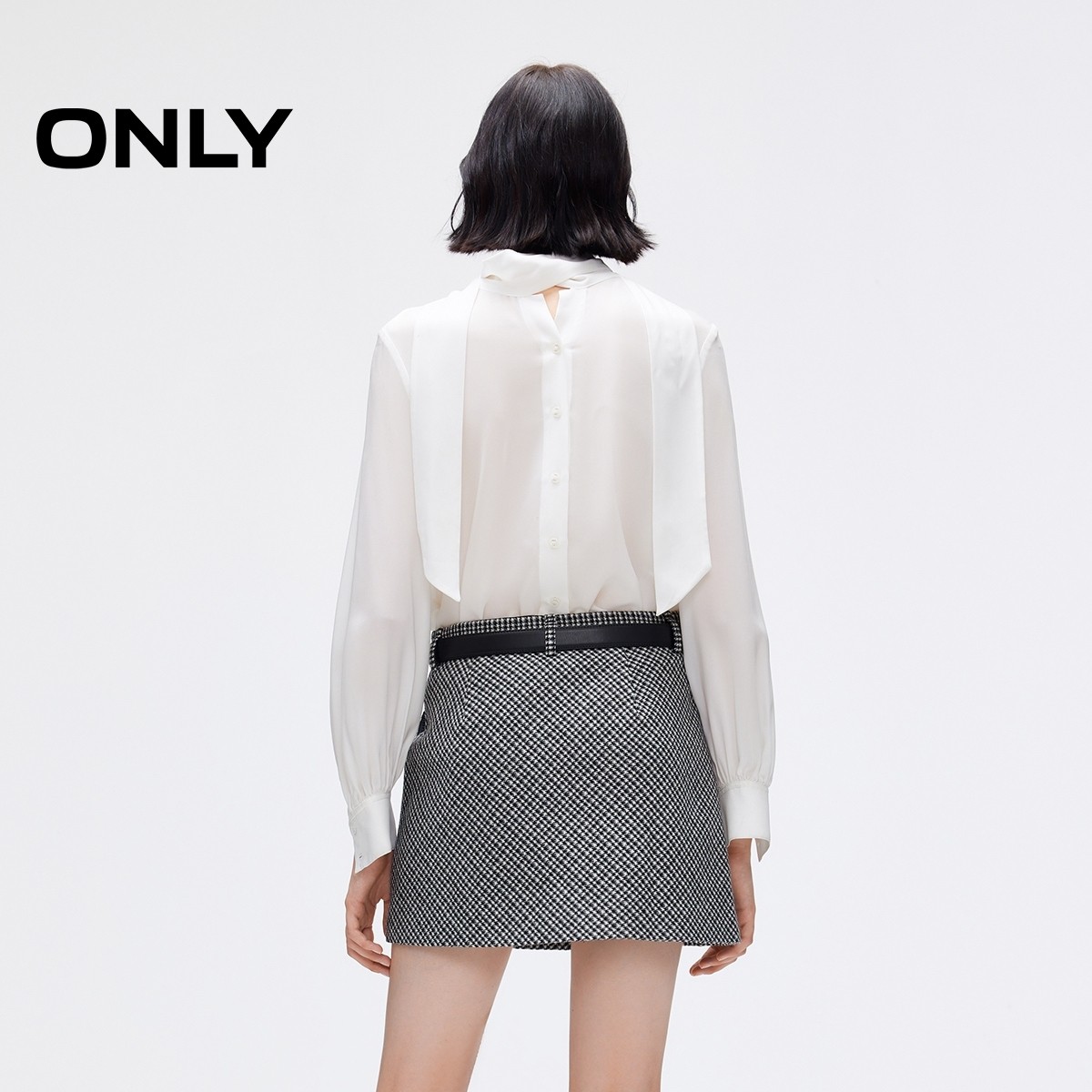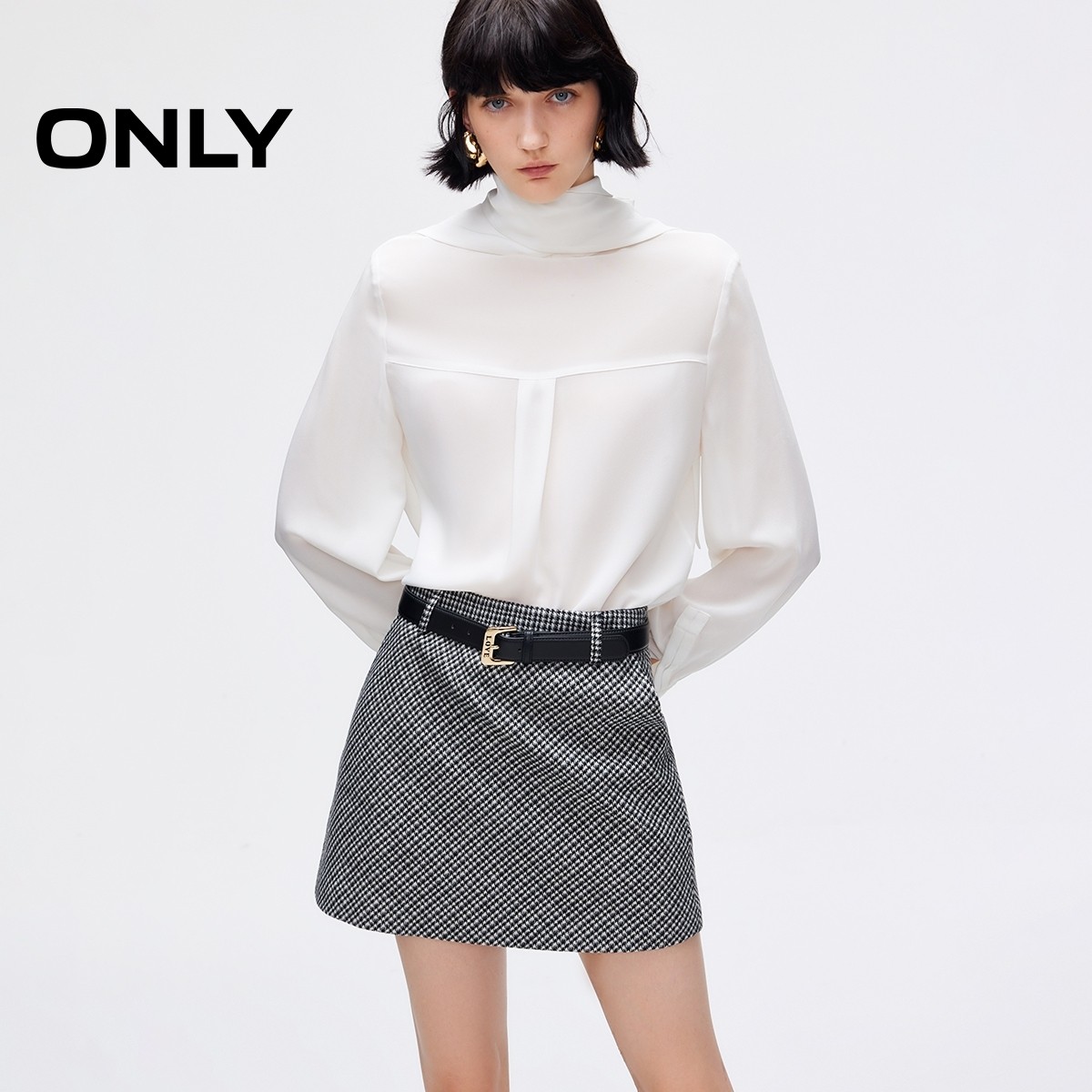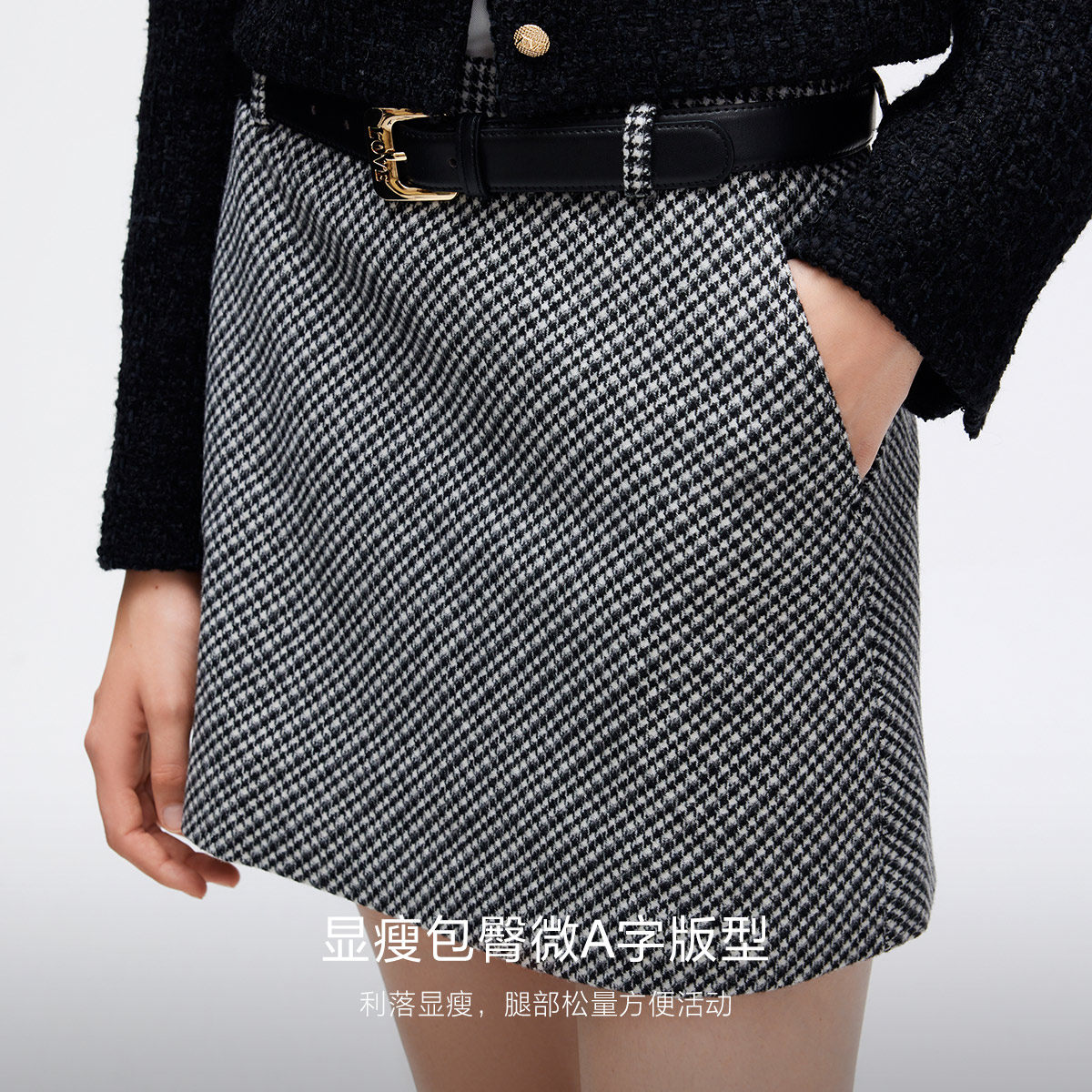 ONLY2025冬季新款复古黑白格纹包臀A字腰带实用插袋短裙半身裙女