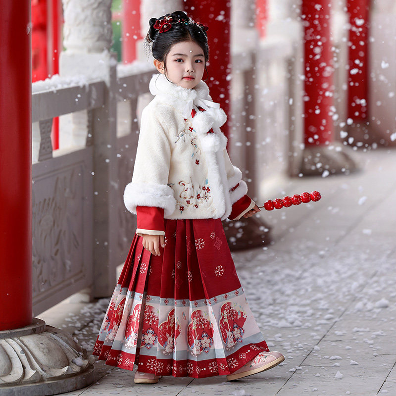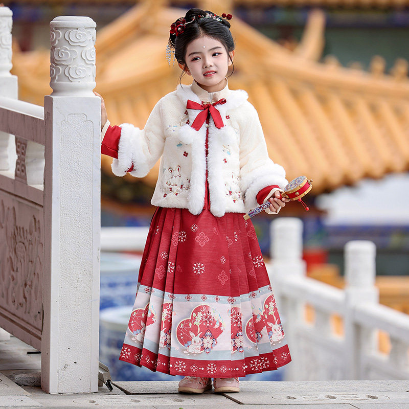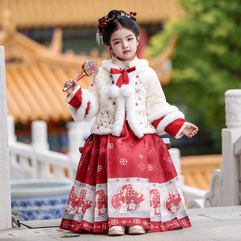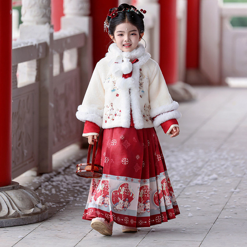汉服女童秋冬季2025新款儿童中国风唐装古风女孩冬装加厚套装裙子