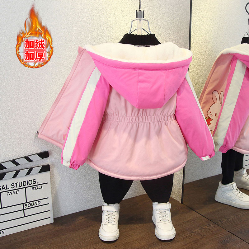 女童冬装外套2025新款冬季棉服加绒加厚棉衣中长款洋气潮童装小童