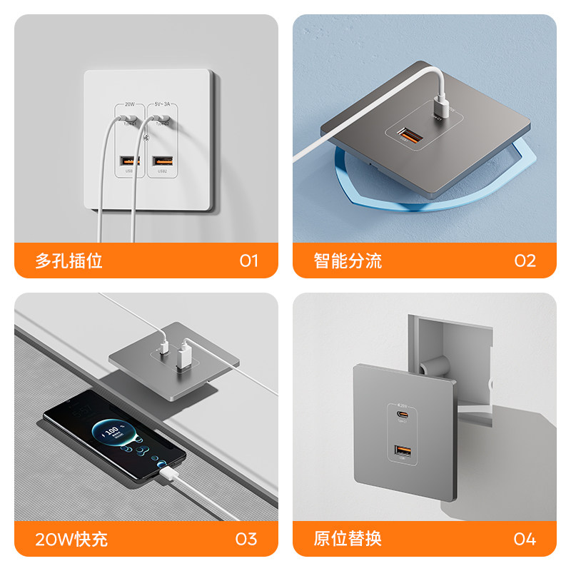 低压36V伏USB+TypeC快充PD插座面板20W瓦学校宿舍充电工地床头插