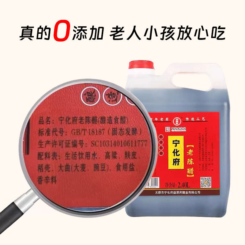 宁化府正宗山西老陈醋2400ml大桶纯粮食酿造饺子醋凉拌蟹炒菜家用