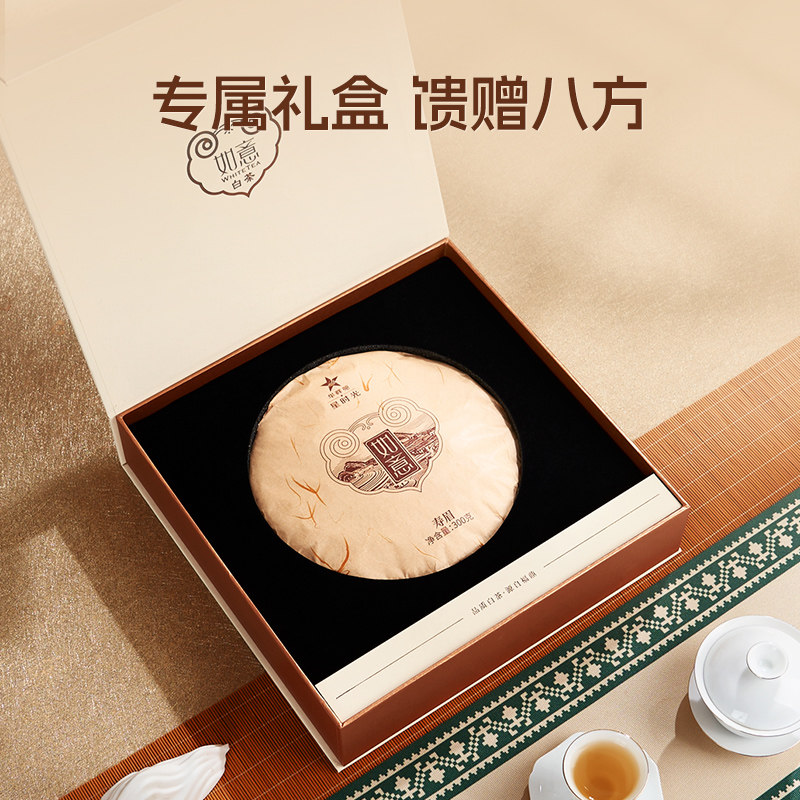华祥苑茶叶 如意福鼎寿眉白茶饼 紧压饼茶 礼盒装300g 伴手礼