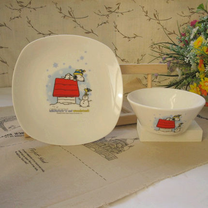 出口外贸SNOOPYand woodstock史努比陶瓷餐具骨瓷盘 米饭碗菜盘杯