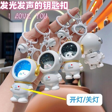 iloveyou发声发光玩偶星空宇航员钥匙扣可爱太空人小熊书包挂件