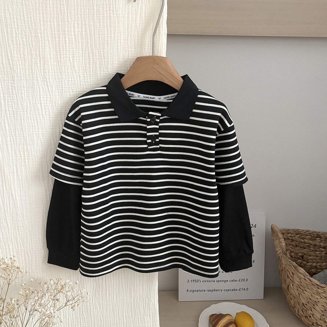 儿童POLO衫秋季男童T恤长袖2025新款春秋季装宝宝秋款条纹上衣服