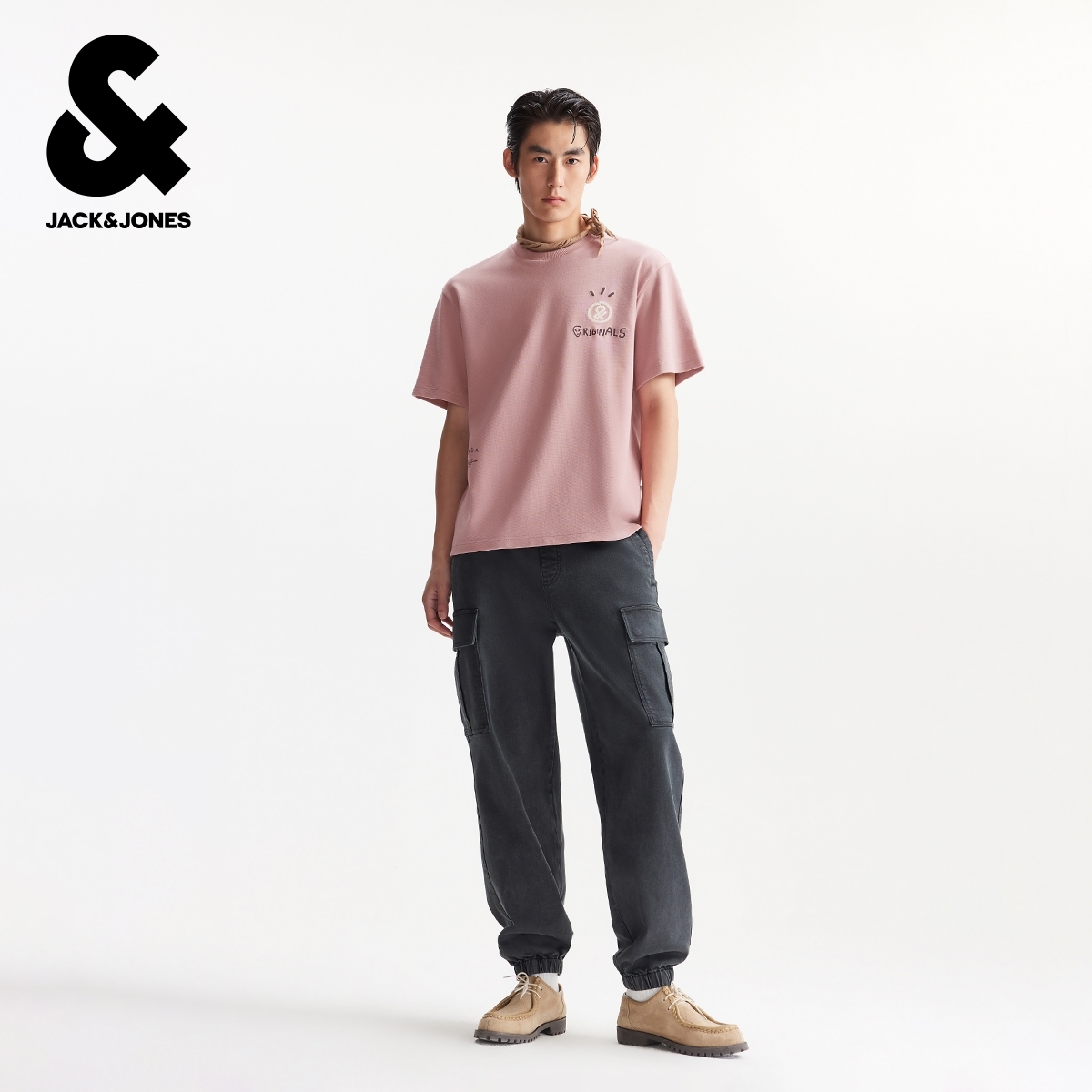 k区绫致杰克琼斯男装秋冬T恤潮百搭休闲宽松罗纹圆领短袖上衣