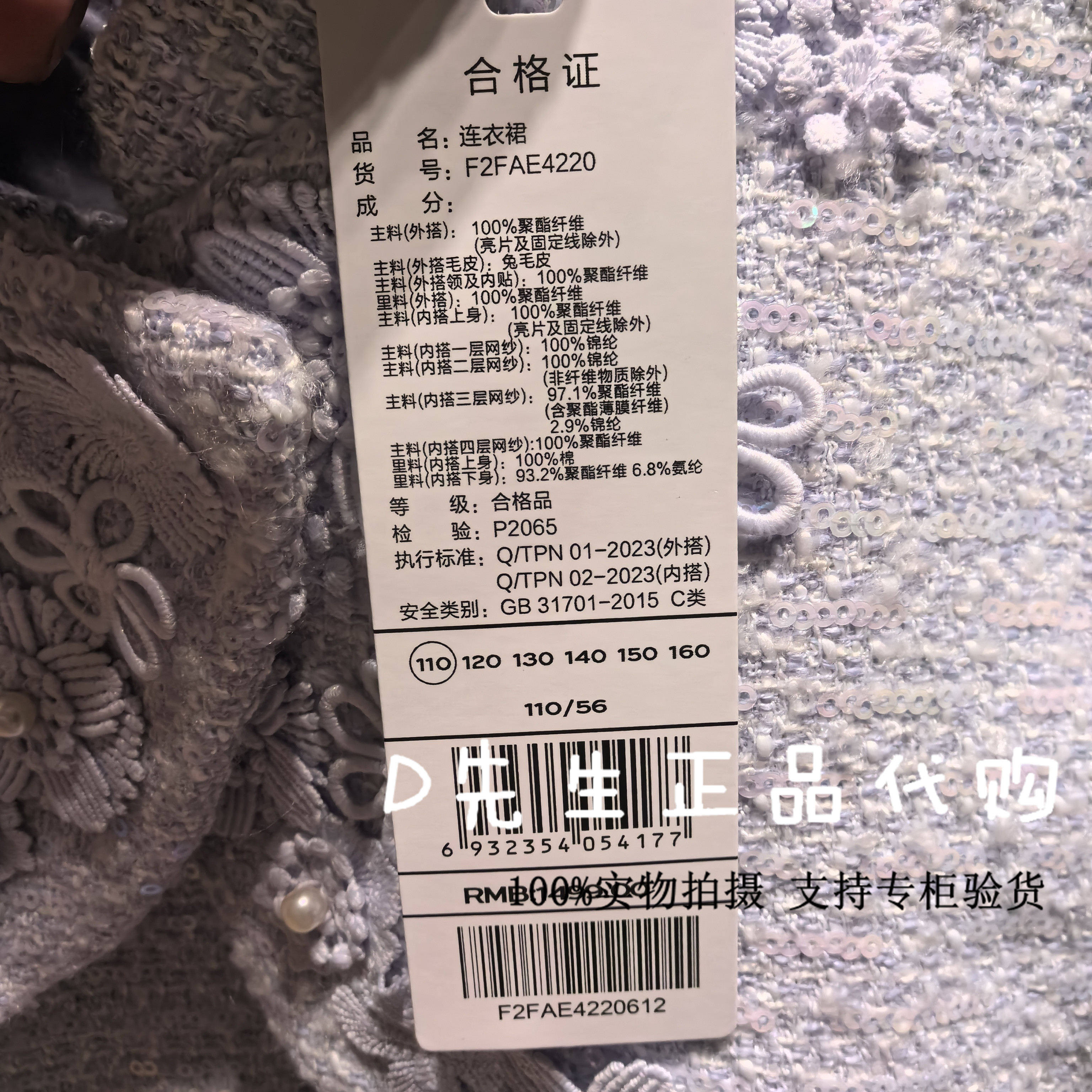 F2FAE4220 mini peace太平鸟童装2024冬装新款女童连衣裙 1499