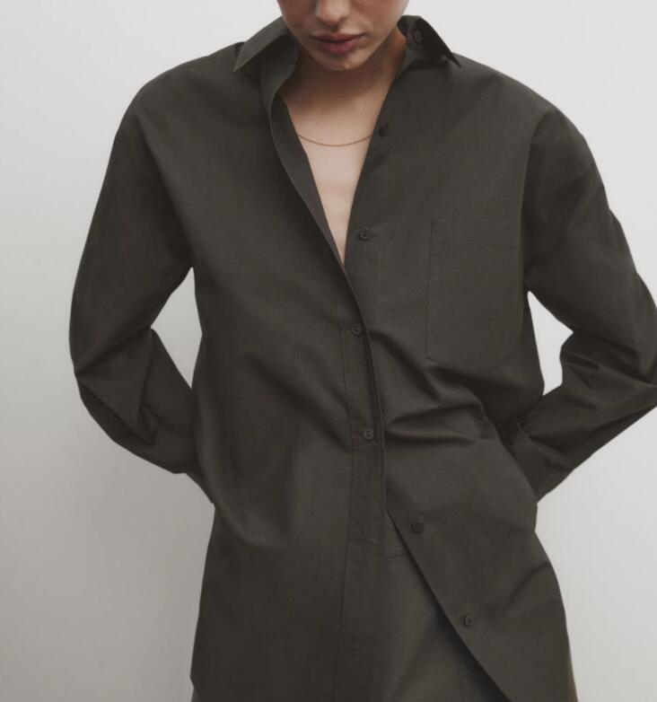 西班牙女装2025春秋季通勤都市风宽松版纯棉翻领口袋长袖衬衫上衣