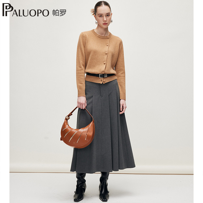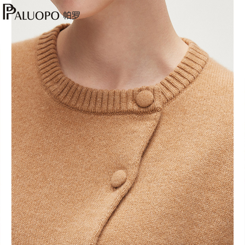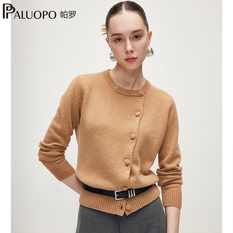 PALUOPO/帕罗【商场同款】RED系列秋冬新款圆领纯山羊绒衫开衫