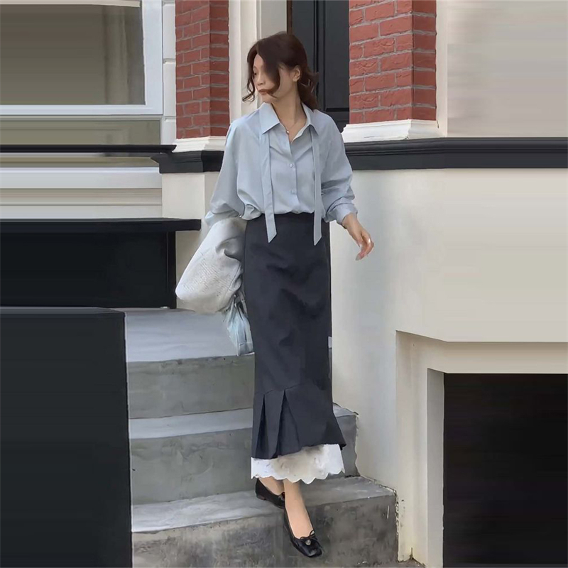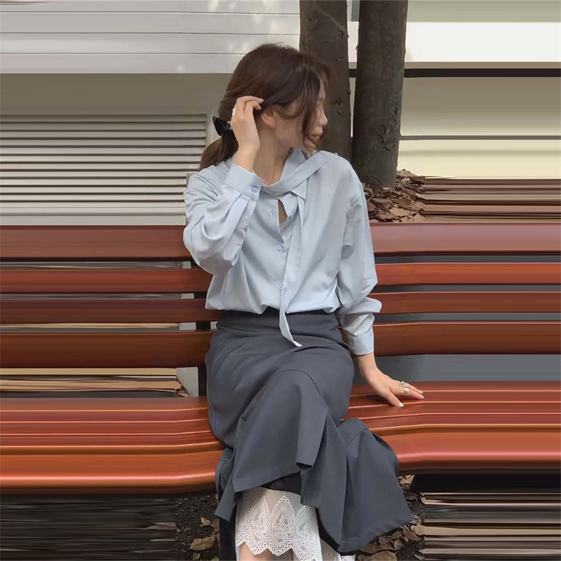 秋冬套装轻奢高级感女人味开衫长袖衬衫搭配高腰A字半身裙两件套