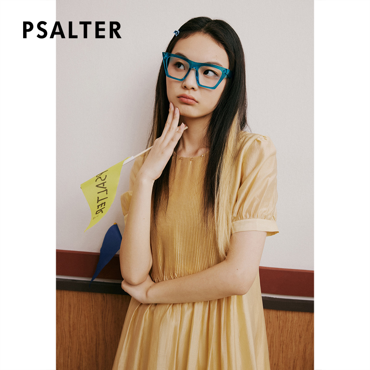 诗篇专选夏圆领泡泡袖天丝莱赛尔收腰显瘦减龄连衣裙