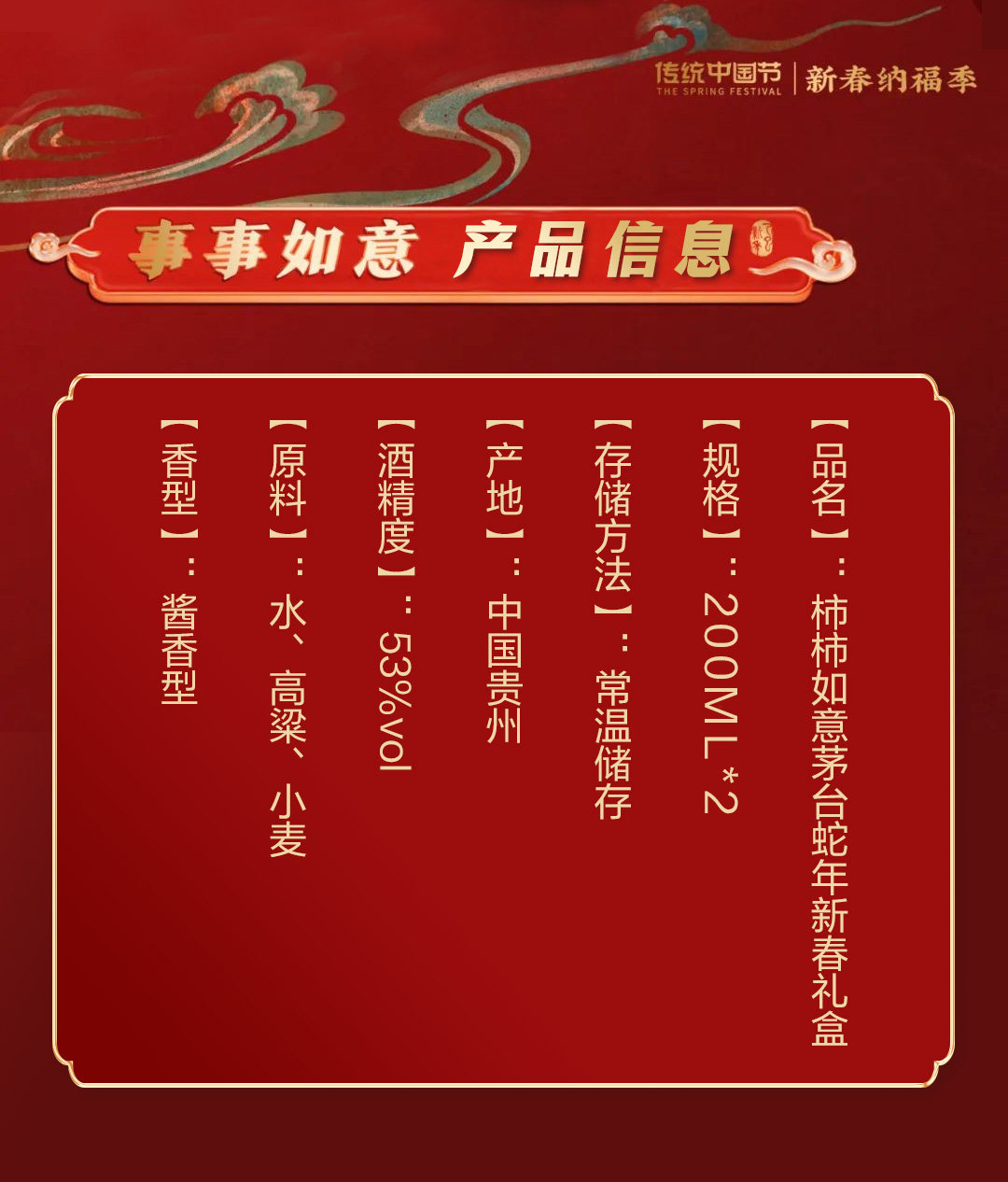 茅台蛇年新春礼盒白酒200ml×2瓶