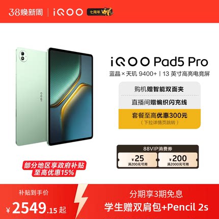 【国补至高15% 下拉跳转淘金币频道领优惠】vivo iQOO Pad5 Pro平板电脑新款天玑9400+学生13英寸电竞游戏