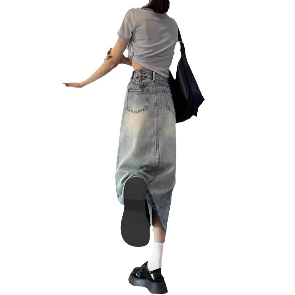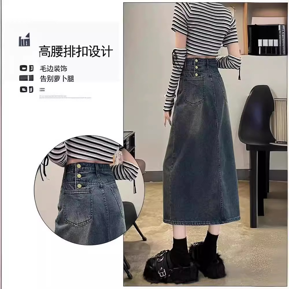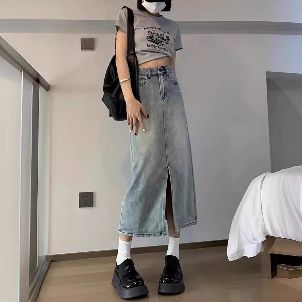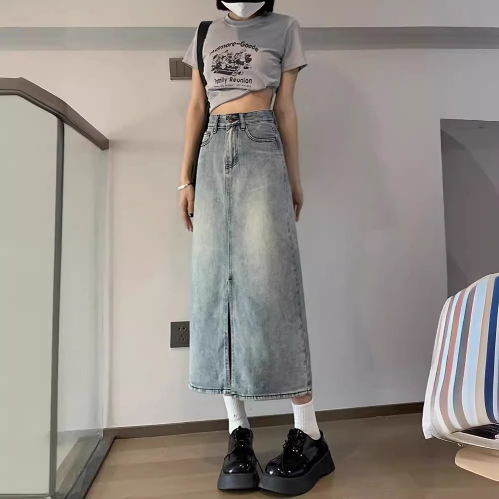 开叉牛仔半身裙女夏季202