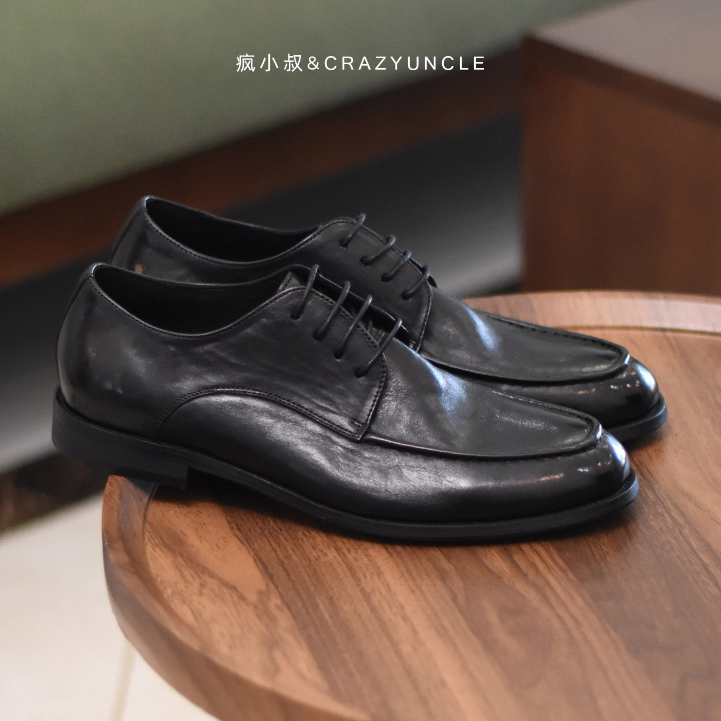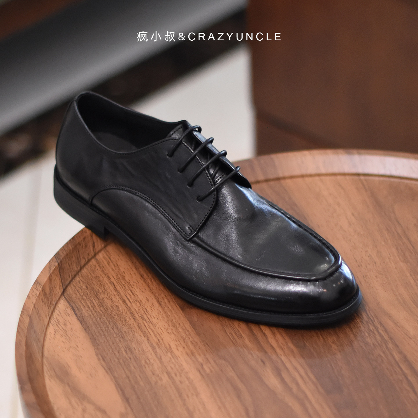 英伦复古手工真皮圆头休闲男鞋潮流德比鞋百搭商务正装皮鞋男婚鞋