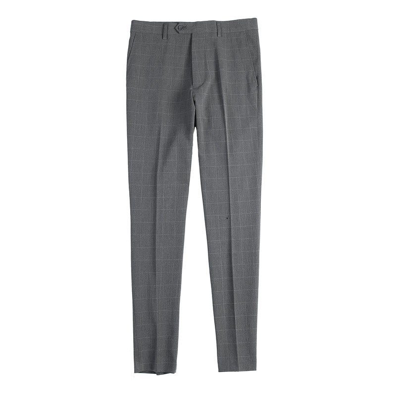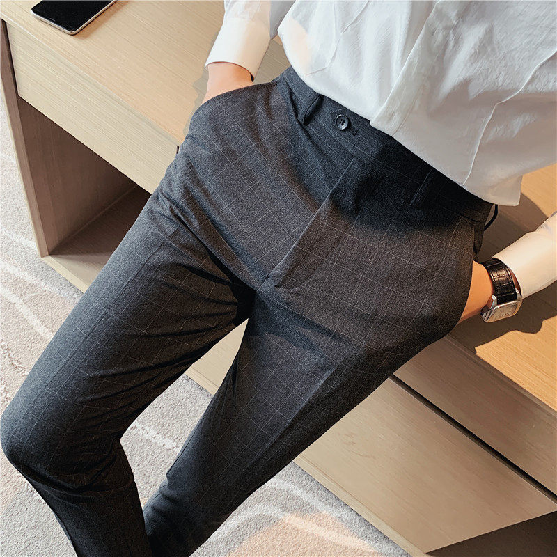夏季裤子韩版商务格子休闲裤潮流西装裤薄款男士弹力修身小脚长裤