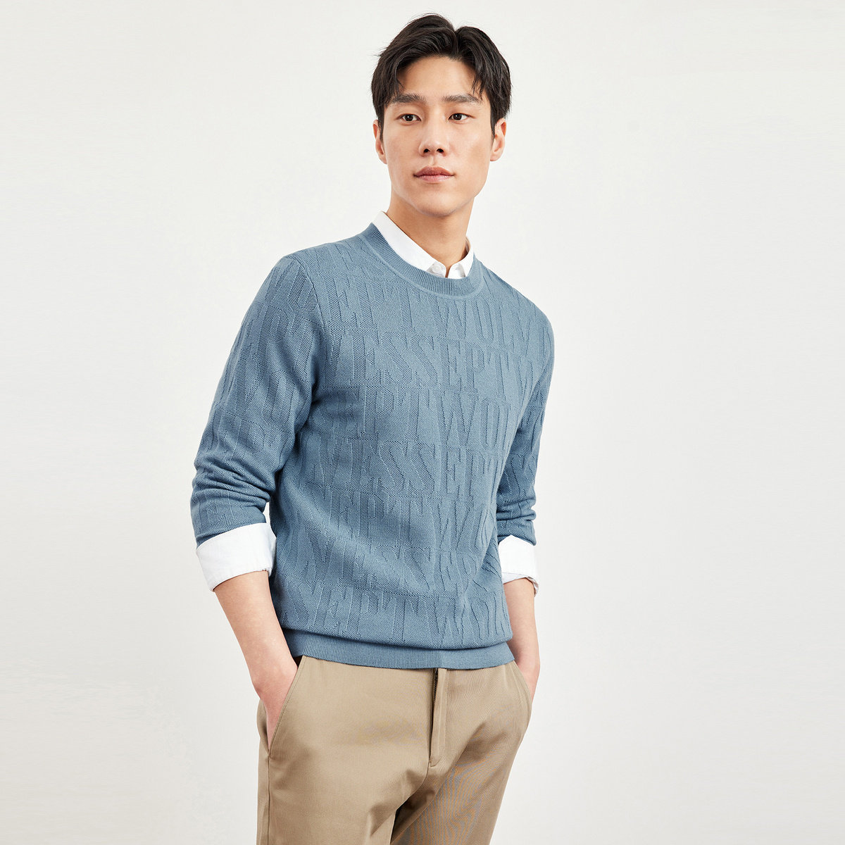 七匹狼毛衣男士2025新款秋冬季加厚中蓝圆领打底针织羊毛衫男装潮