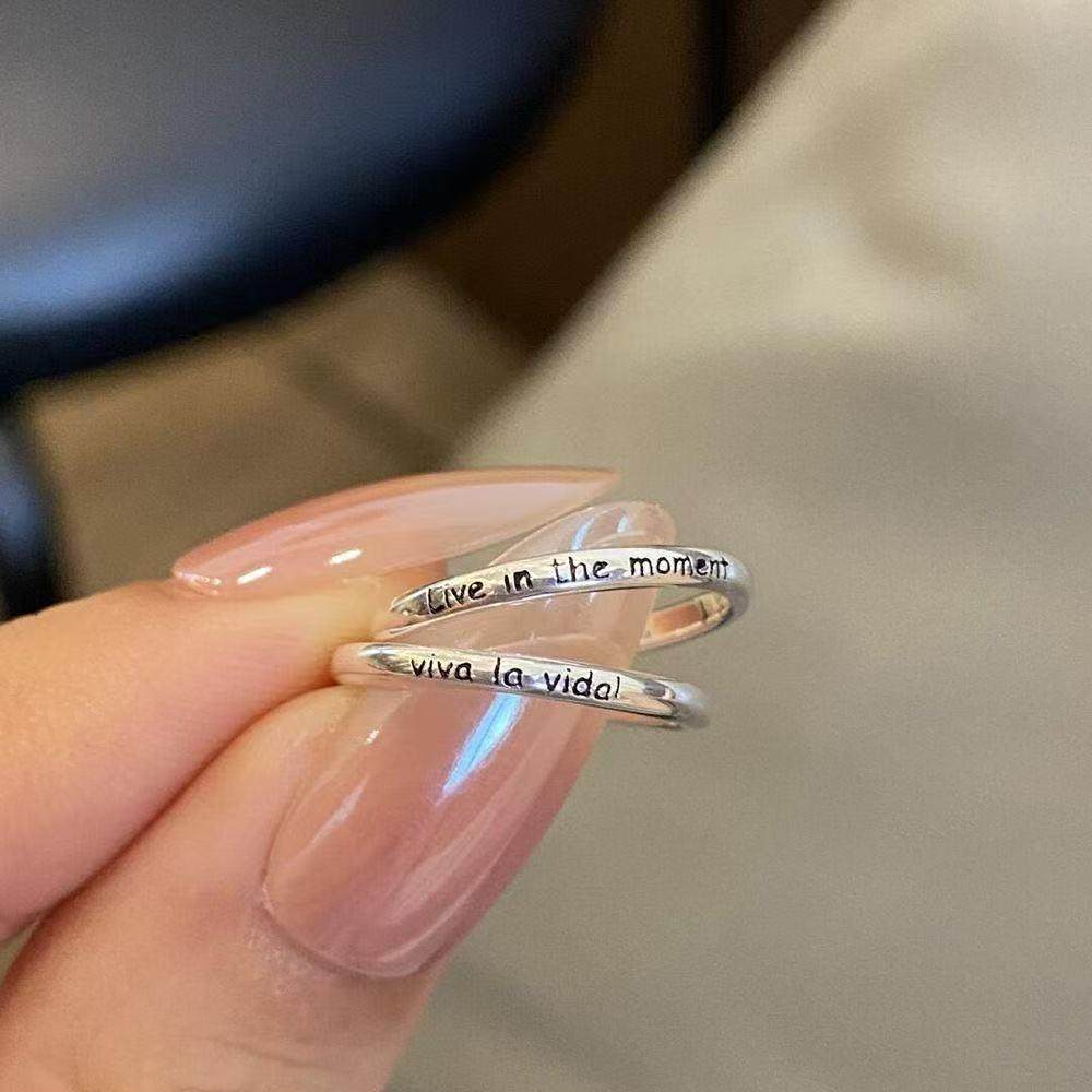 viva la vida!人生万岁字母活在当下英文尾戒小拇指细圈戒指开口