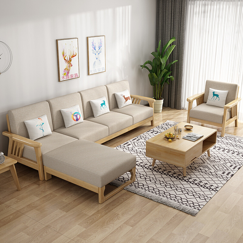 北欧实木沙发组合简约现代布艺贵妃转角沙发小户型三人位客厅家具