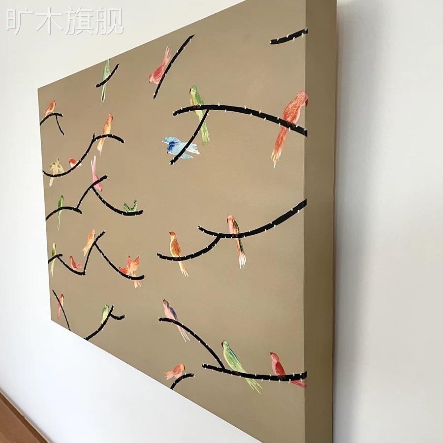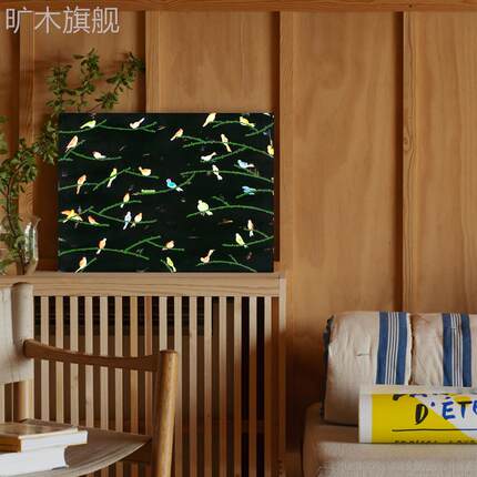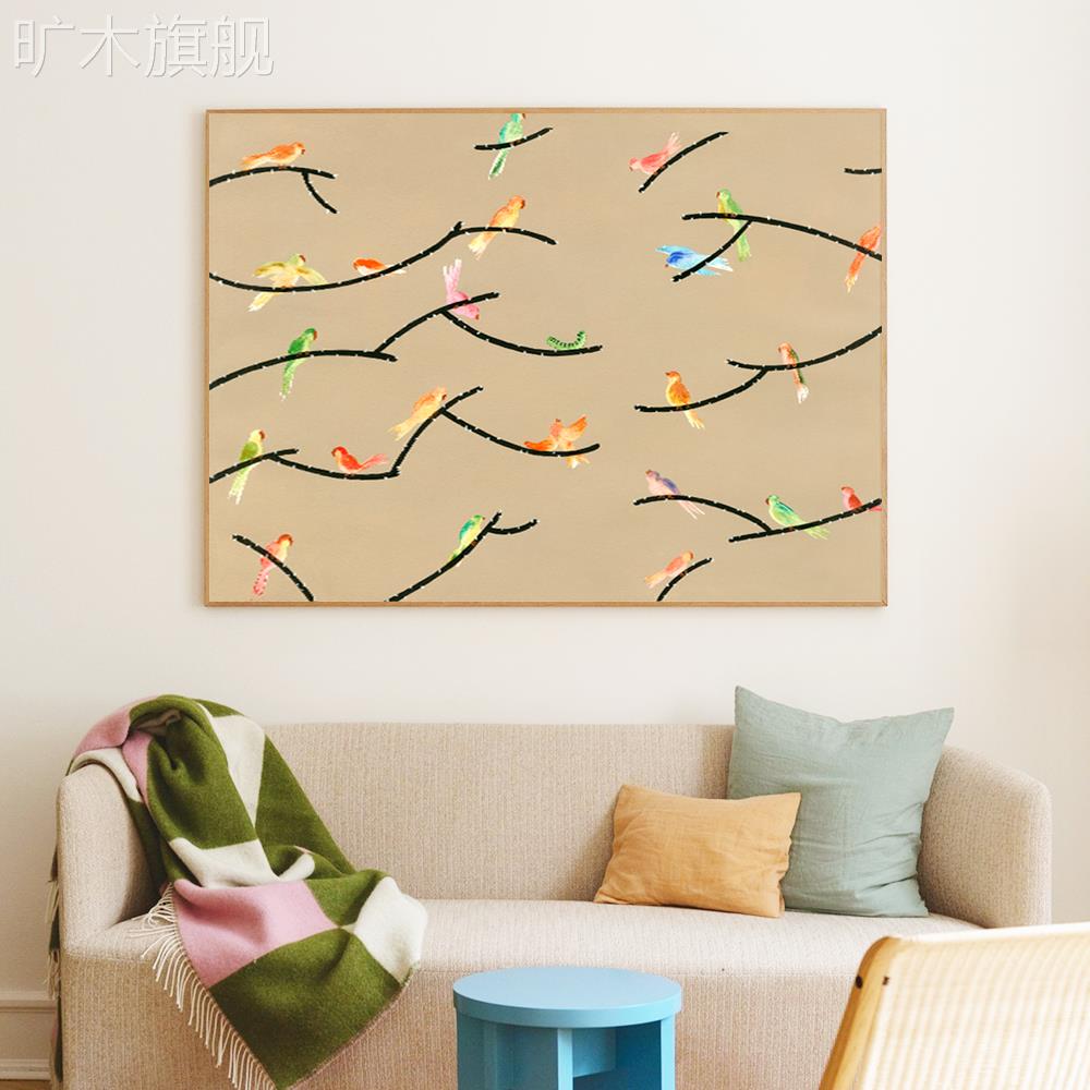 原木风客厅餐厅奶油风百鸟壁画主卧室床头装饰画背景墙挂画无框画