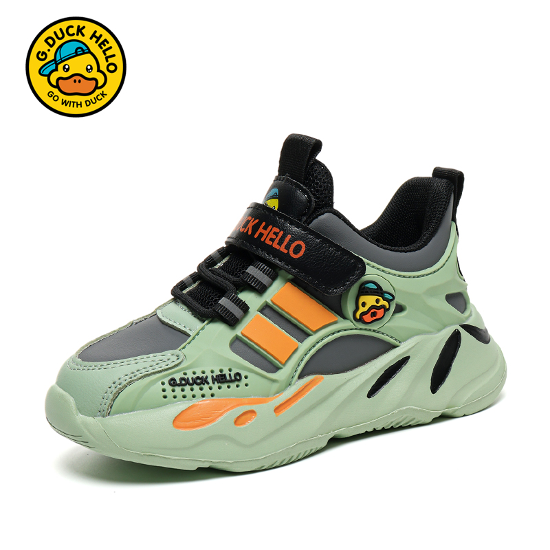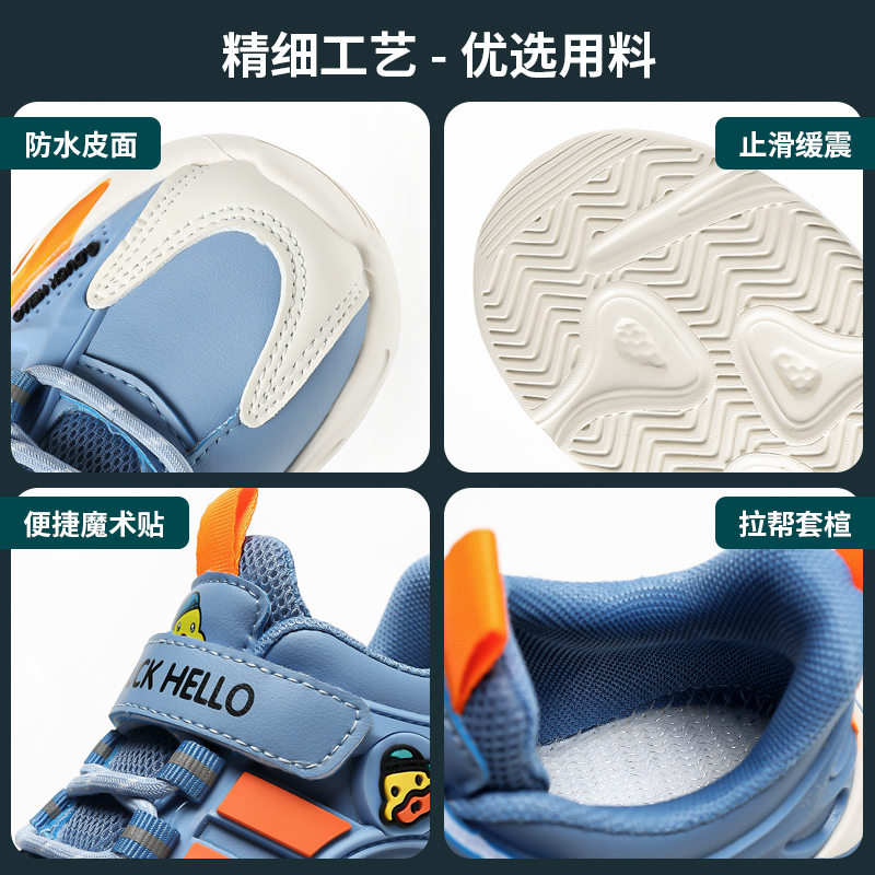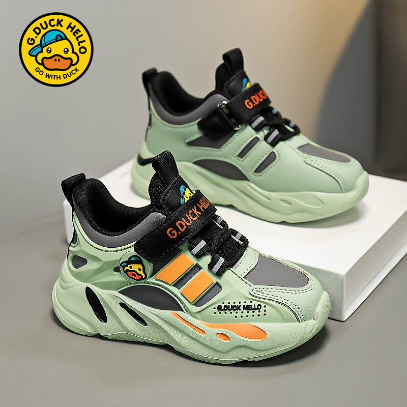 小黄鸭童鞋男童鞋2025新款秋季皮面防水儿童运动鞋软底减震跑步鞋