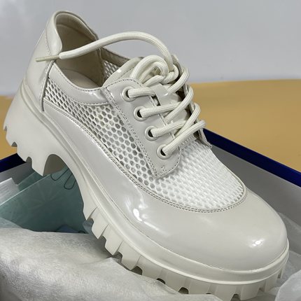 羊漆皮玛丽珍鞋女2025春秋新款网面透气真皮粗跟乐福鞋透气单鞋子