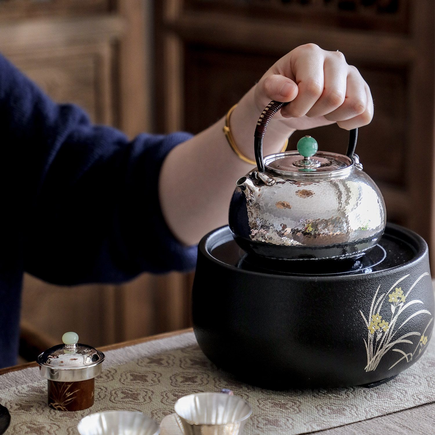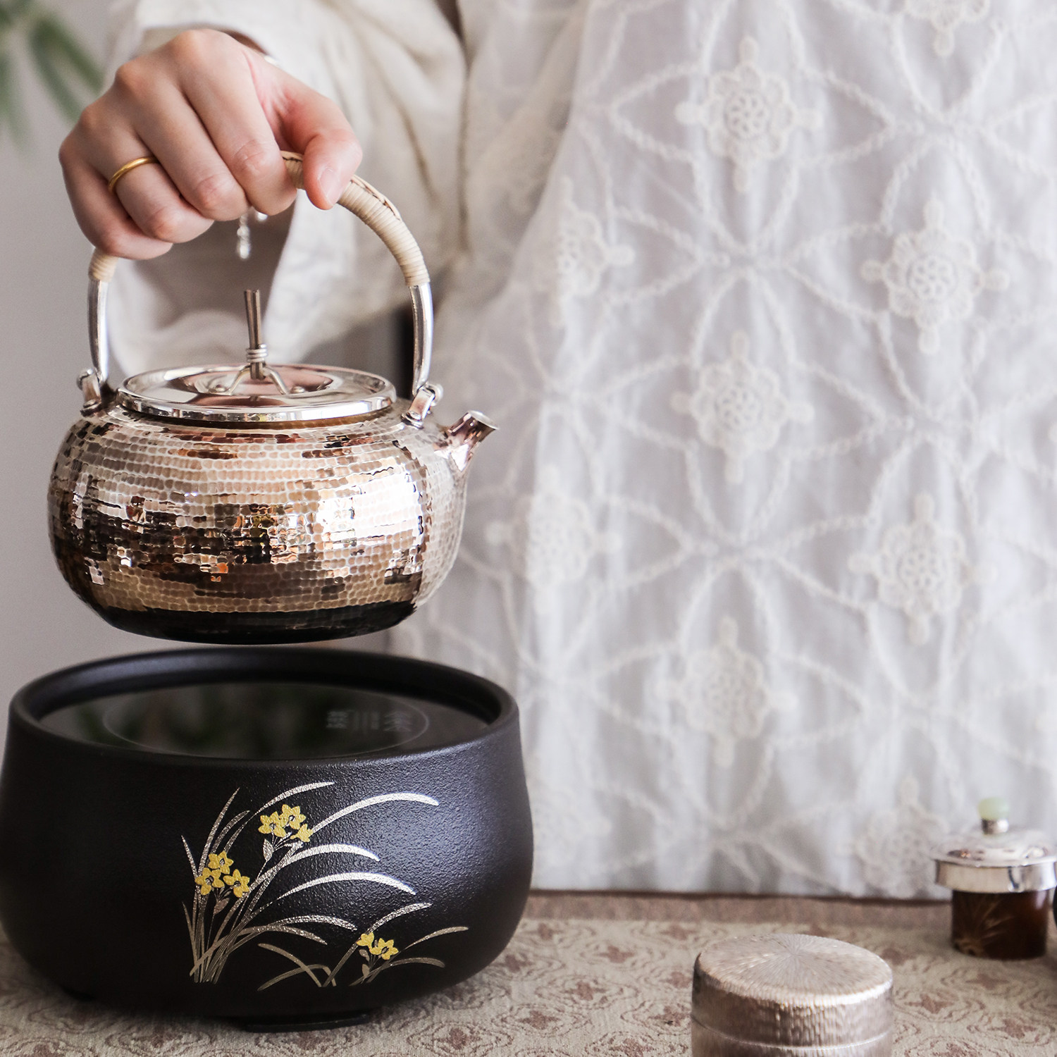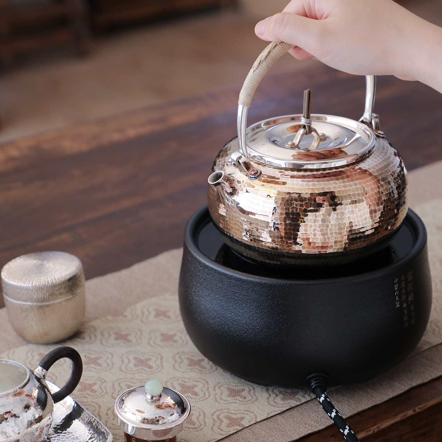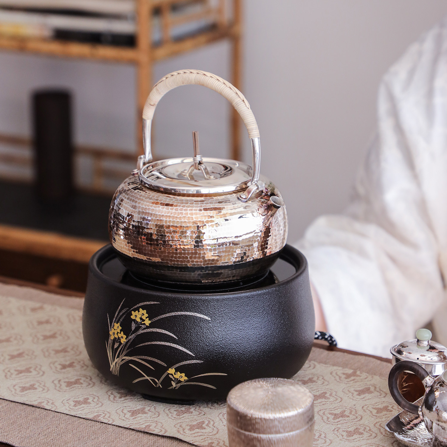 纯银时代 莺歌烧电陶炉幽兰静音遥控家用围炉煮茶烧水炉