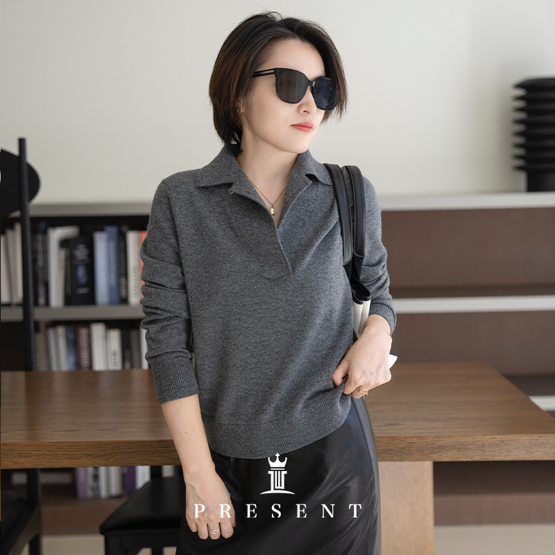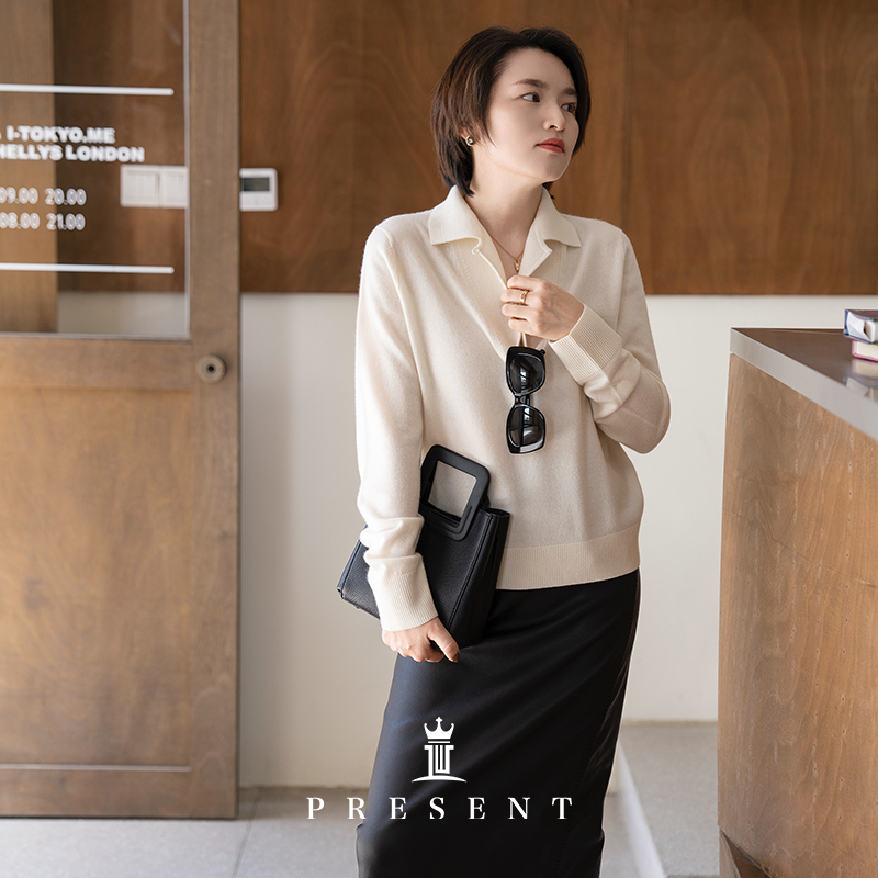 JCLP联名定制款丨匠心山羊绒polo领通勤针织套头衫上衣25秋款女