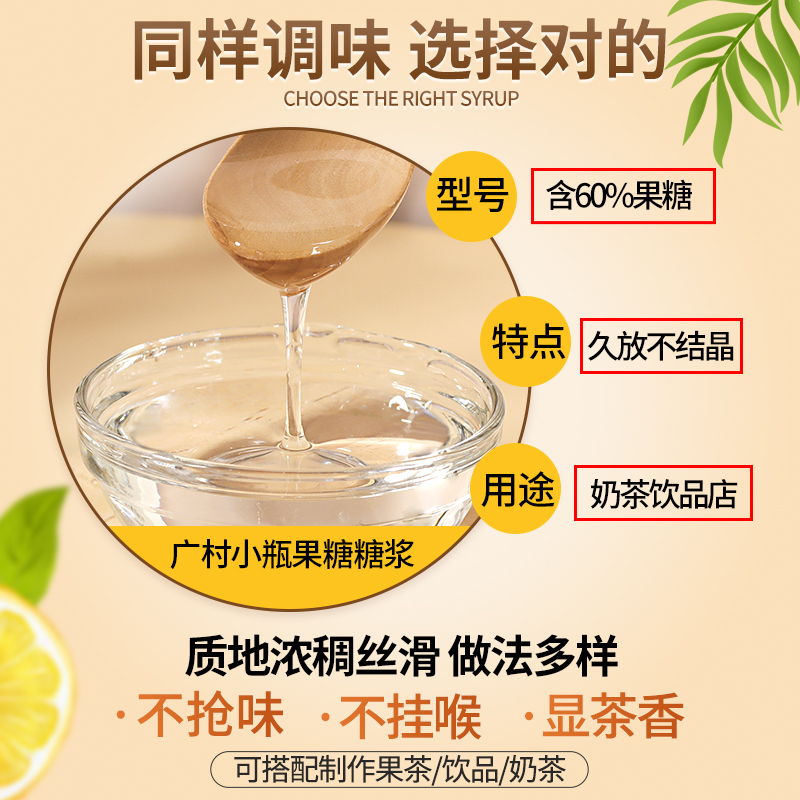 广村果糖f60小瓶水果茶调味风味糖浆商用果葡蔗糖咖啡奶茶店专用