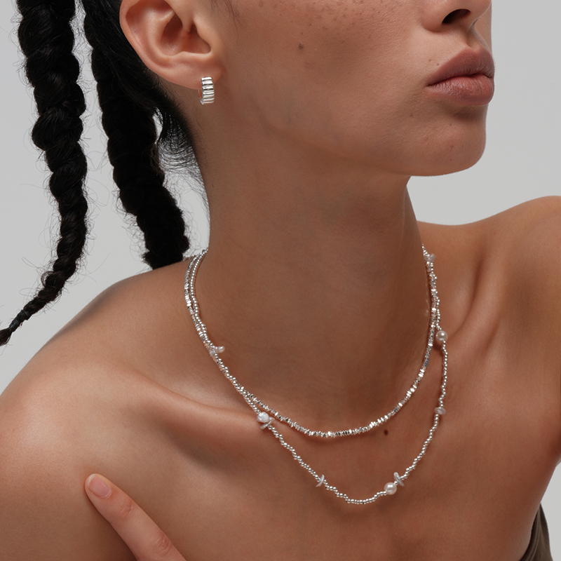 【CnHnOn脂肪商店】天然巴洛克珍珠花瓣银珠小众纯手工锁骨项链