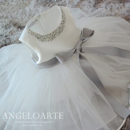 花童礼服女儿童婚纱白色女童公主裙蓬蓬裙夏秋宝宝生日摄影演出服