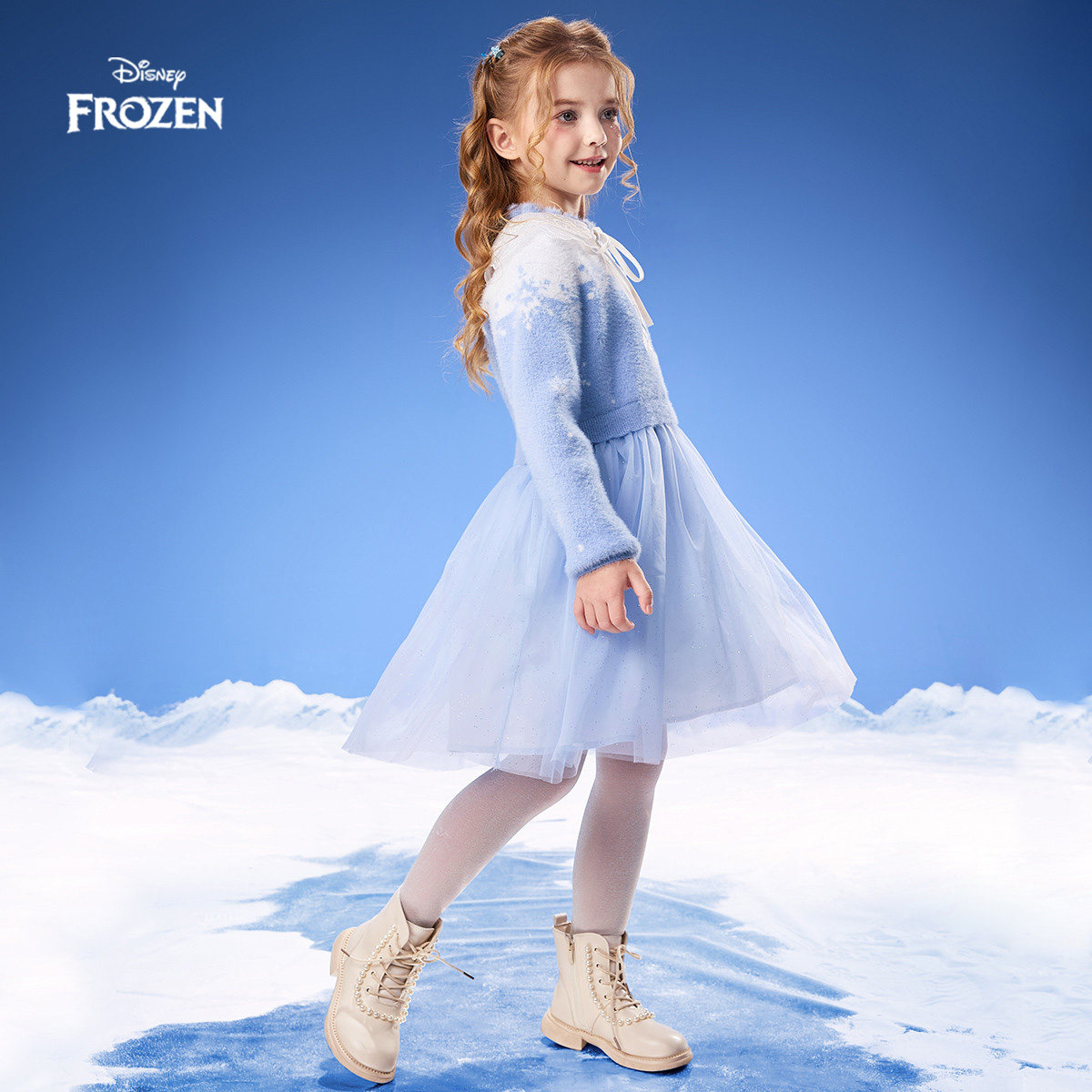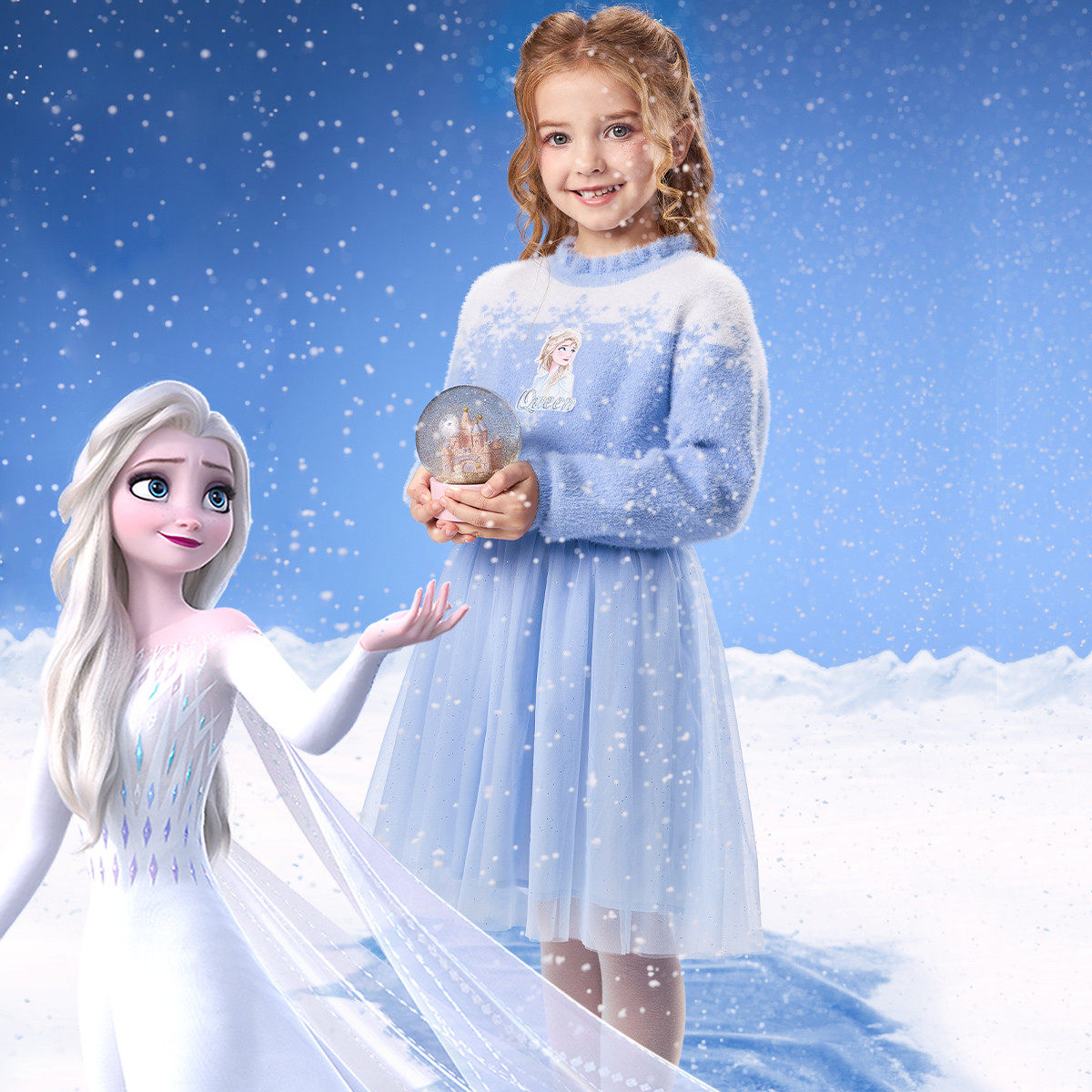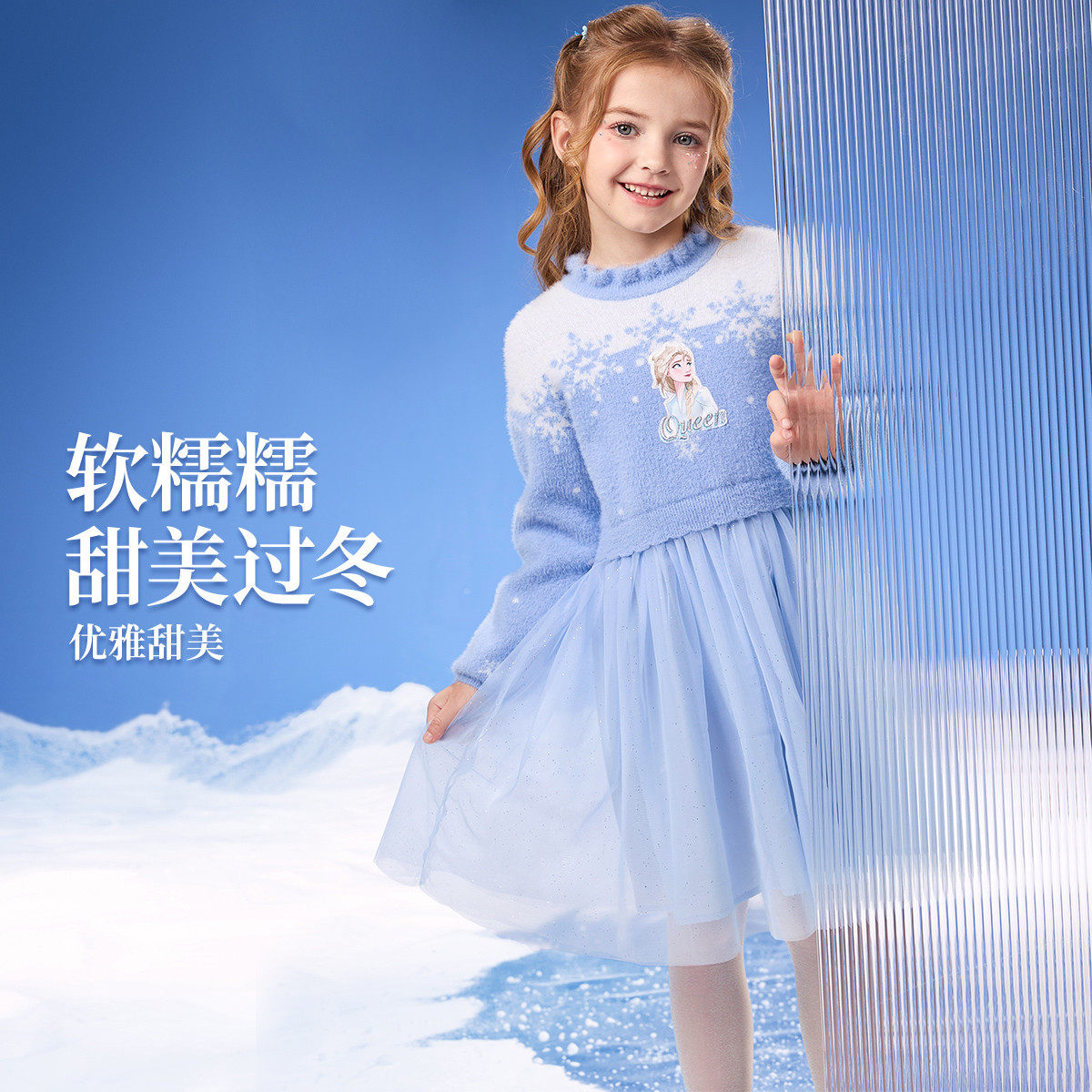 迪士尼艾莎公主裙2025冬季新款女童毛衣连衣裙女孩冬裙时尚冬装女