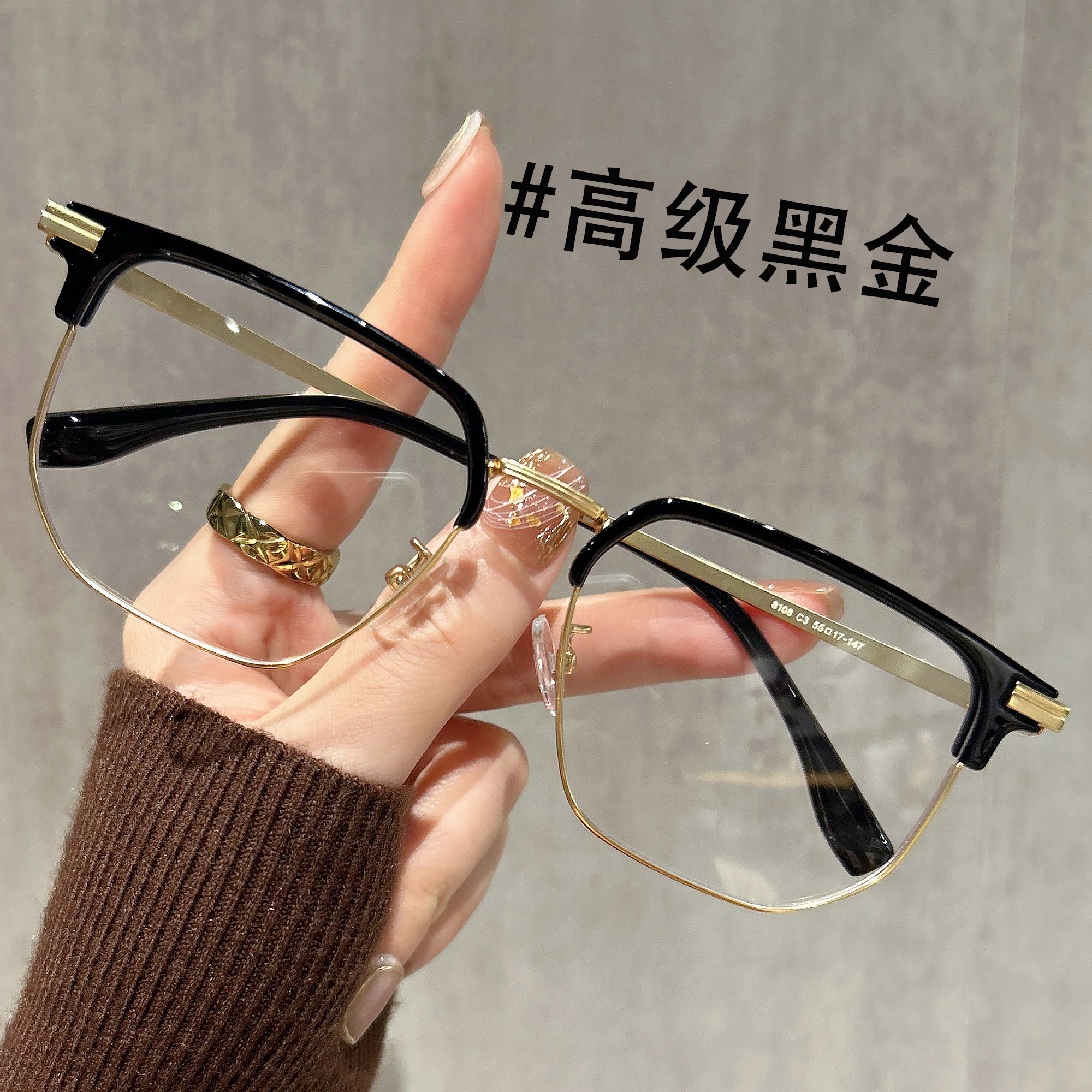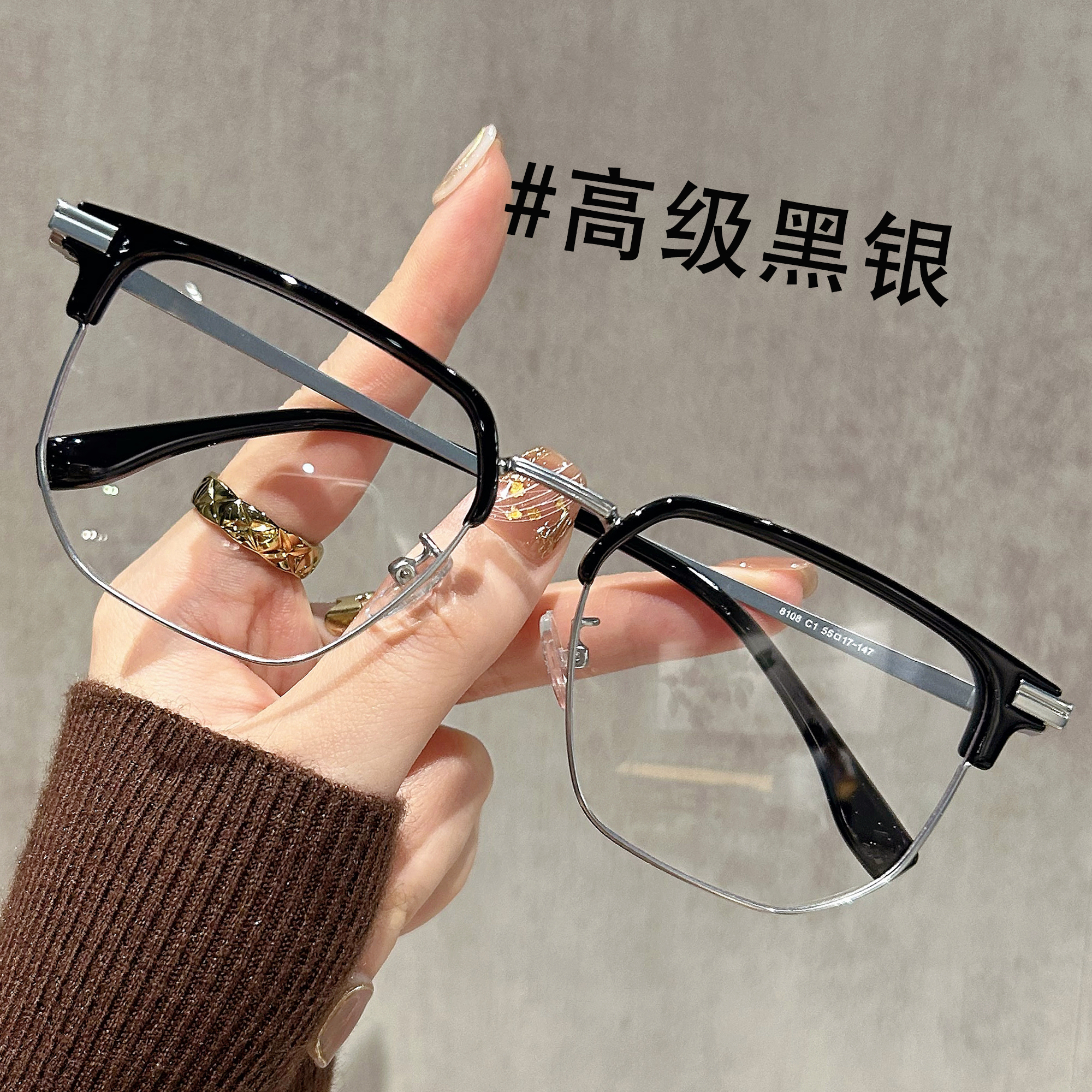 半框眼镜男款近视高级感磨砂黑框