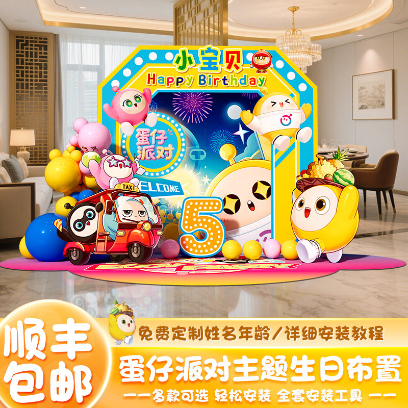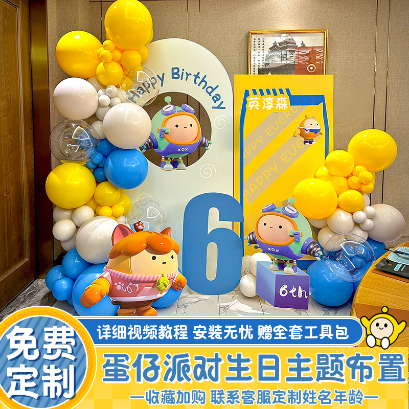 蛋仔派对主题生日布置场景装饰10十二岁12男孩儿童气球背景墙kt板