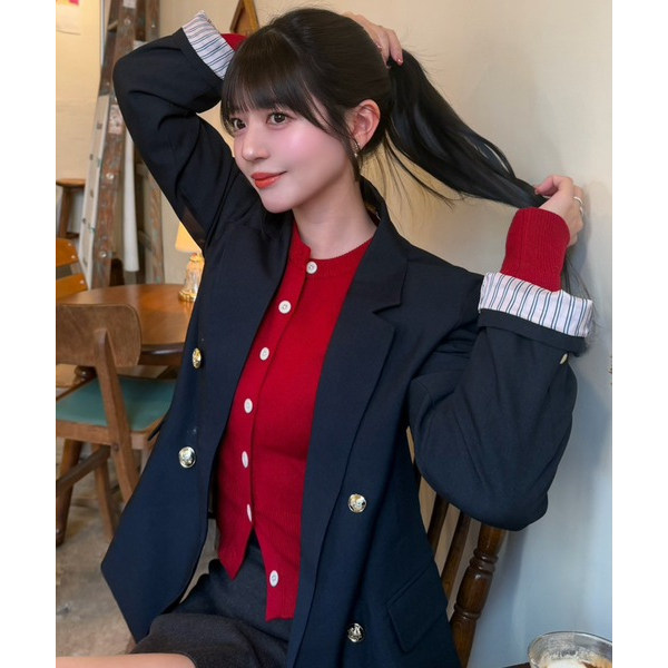 D17098日单新款客供料双排重工金属扣宽松显瘦女气质休闲西装外套
