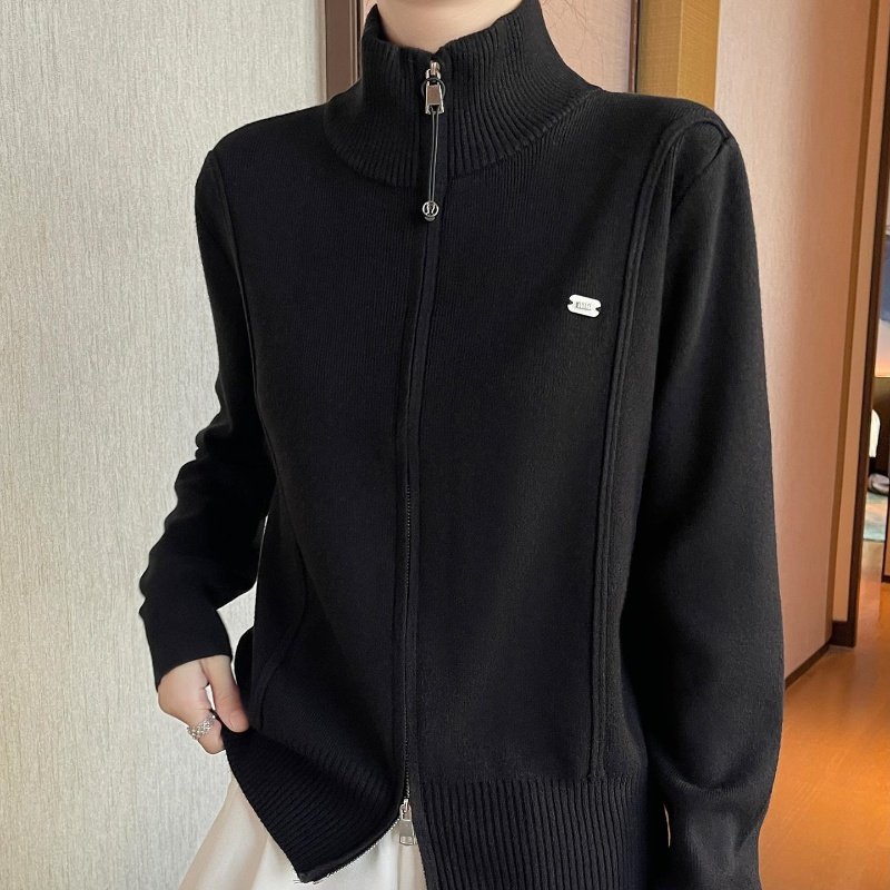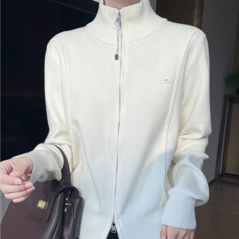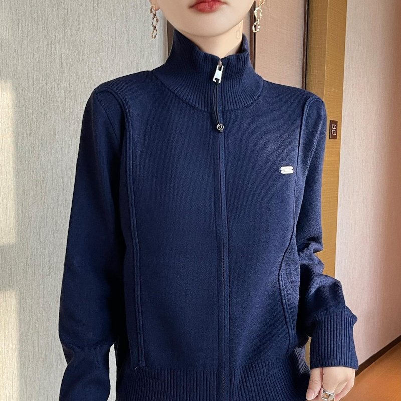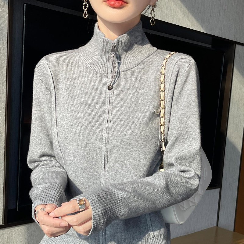 灰色双拉炼高领针织衫开衫运动短款洋气上衣小个子秋季毛衣外套女