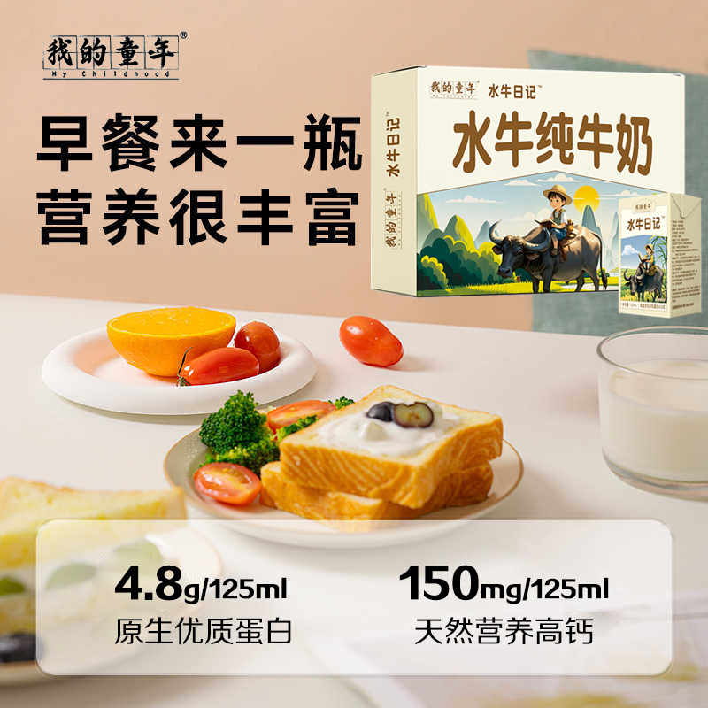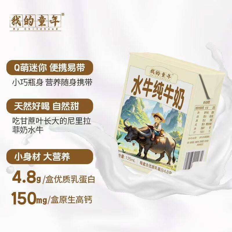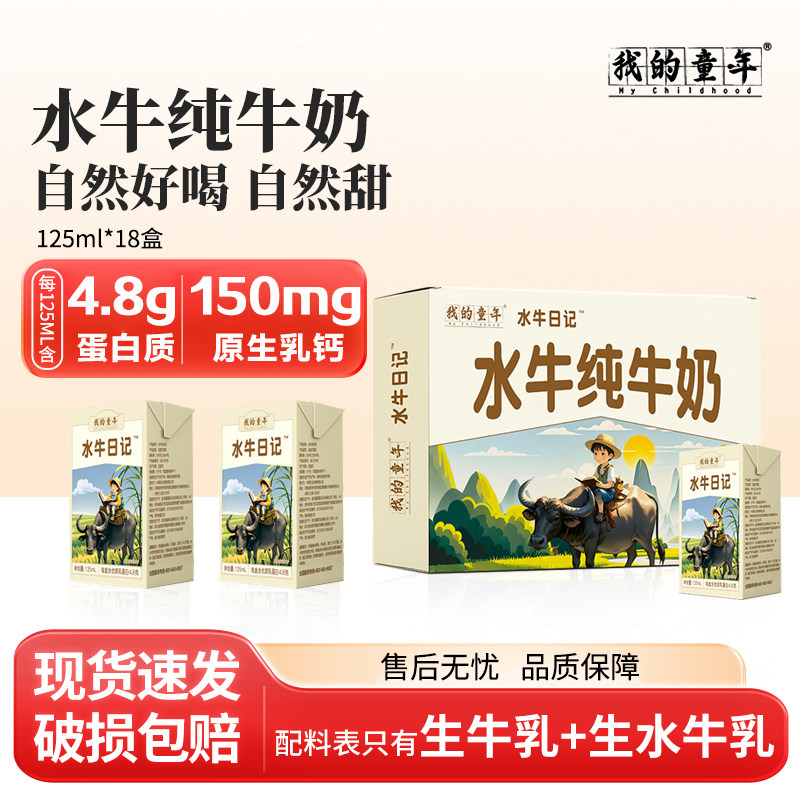 我的童年水牛纯牛奶125ml*18盒整箱批发儿童学生上班族营养早餐奶